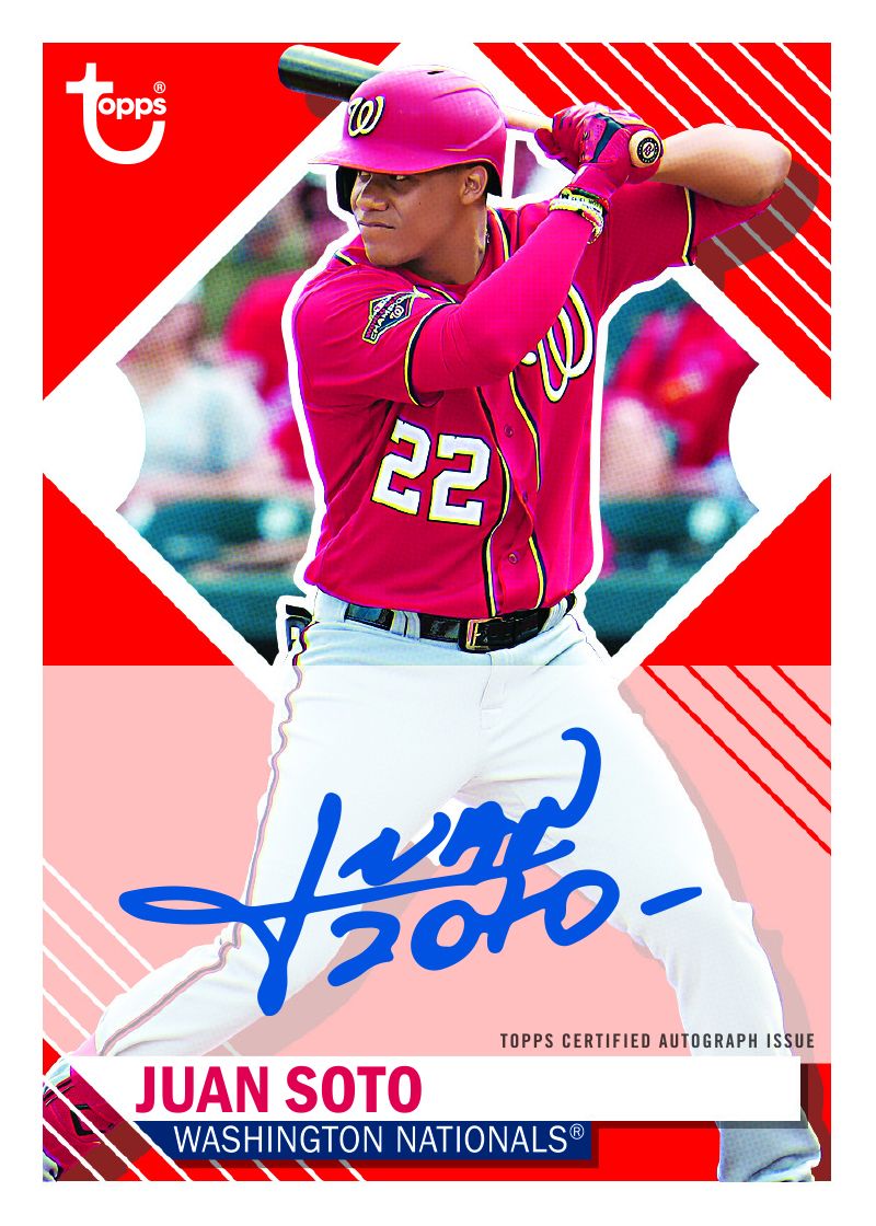 The Basics: These boxes will include two autos and then two parallels (tiers not detailed in advance) and five base cards from a 50-card set (checklist above) that will have a mix of past and present stars and rookies. Among the signers? Ronald Acuña Jr., Mike Trout, Ken Griffey Jr., Derek Jeter, Aaron Judge, Albert Pujols, Cal Ripken Jr., Ichiro Suzuki, Jonathan India, Jim Thome, Larry Walker, Mike Piazza, Nolan Ryan, Rickey Henderson, Vladimir Guerrero Jr. and plenty more. ... The base set includes 16 Rookie Cards with the reigning NL ROY among them. ... Boxes carried an initial price of $149.99 via Topps.