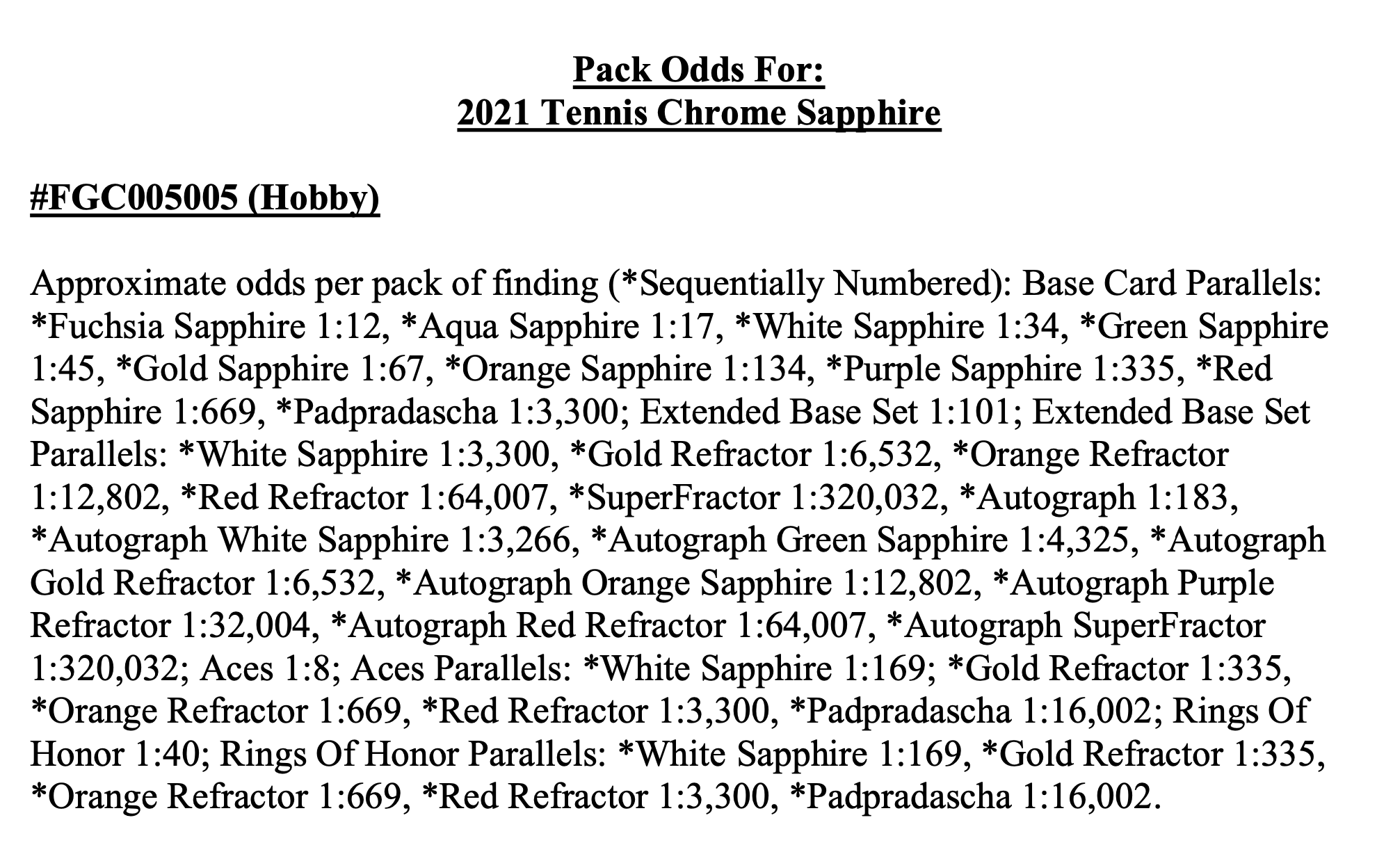 What: 2021 Topps Chrome tennis cards (Yes, solicited as "2021.")