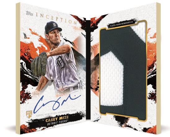On the auto-Relic front, there will be patches (/TBD) that also will have Green (/99 max) Magenta (/75 max), Red (/25), Orange (/10), Blue (/6, buttons) and Inception 1/1s using the jersey-maker logos. ... There also will be jumbo patch autos one per case with Red (/50), Orange (/25), Blue (/10) and 1/1 Inception (team logo patch for the 1/1) as well as jumbo hat patch cards autos with team logos, New Era logos and MLB logos versions. All will be limited to just five copies just like past years. ... Rarer autograph finds in this one will be team logo patch books (/2), laundry tag books (1/1) and MLB logo books (1/1) just like last year along with letter book cards (/2). A new inclusion for this one will be Gameday Gear auto Relic books (/5) that will have patches, socks and hat pieces with a 1/1 Inception parallel, and rounding things out will be Inception Autographed Game Socks Relics (/3) with a 1/1 parallel.