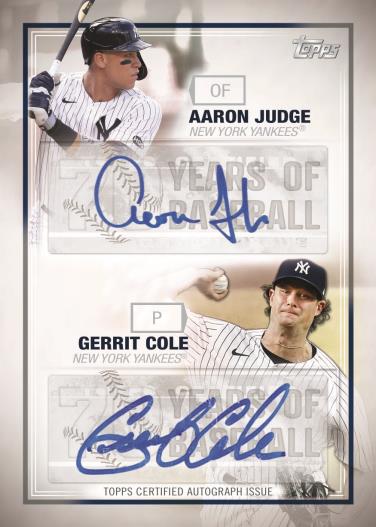 For autographed Relics, there will be Reverence autographed patches (/10) with Red (/5) and 1/1 Platinum parallels and those same parallel colors will be found for Major League Material auto Relics (/50 max), and Significant Statistics auto Relics (/50 max). Standard autos will include 70 Years of Baseball autos with past and present players found with Black (/199), Gold (/50), Red (/25) and 1/1 Platinum parallels. Joining those will be 70th Duals (/5), 1986 Topps autos with on-card sigs and Black, Gold, Red and Platinum parallels as well as the same for a 1986 All-Star set. Significant Statistics Autos (/50) will be found with Red and Platinum versions the only parallels, while some 1/1 cut autos also will be in play.