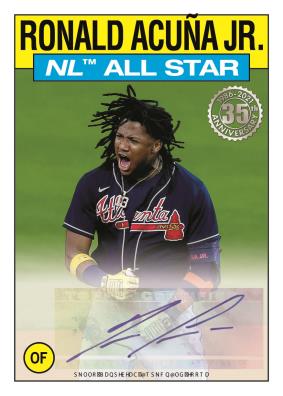 Among the inserts will be another group of 70 Years of Topps (past and present players on past designs) with autos (/10) possible for some players. Jumbo boxes will have a two-card Chrome 70 Years of Baseball pack and there will be Superfractors to chase there, too. Home run Challenge cards will also be back one per hobby or one per jumbo box, while a new inclusion will be DH Debuts cards showing players who were DH in the National League this past season. Those will have Blue, Black (/299), Platinum (/70), Red (/10) and 1/1 Gold parallels as well as autographs for some players (/10 max). A new one here will be Zero to Sixty cards that look back at last season's 60-game leaders and compare them with other notable 60-game spans to put the 2020 into perspective. Also among the inserts will be Significant Statistics and Platinum Players Die Cuts. Each of these will have the same rainbow of parallels as mentioned for the DH set but with the Statistics set not having autos. Also in the mix will be 1986 Topps cards with Blue, Black, Platinum Red and Gold versions along with 1986 Topps All-Stars cards, too. Back in packs will be sketch cards as well as shaped sketch cards -- just 70 total shaped cards will be made. ... Manufactured Relics will include Commemorative World Series Rings (/199) and 2021 Rookie Card Patches. They will each have Platinum (/70), Red (/10) and 11/ Gold versions as well as autographs (/10) for some players.