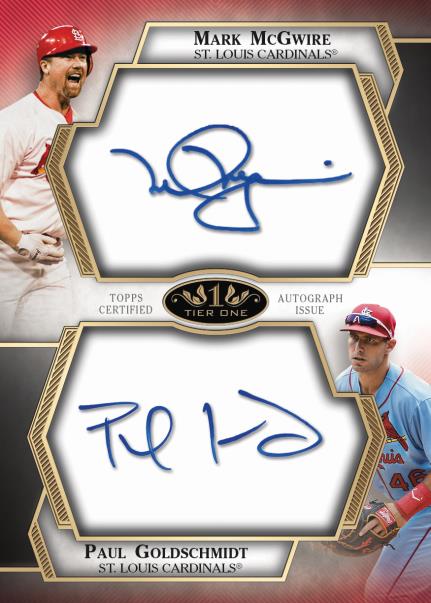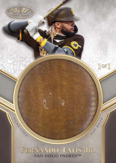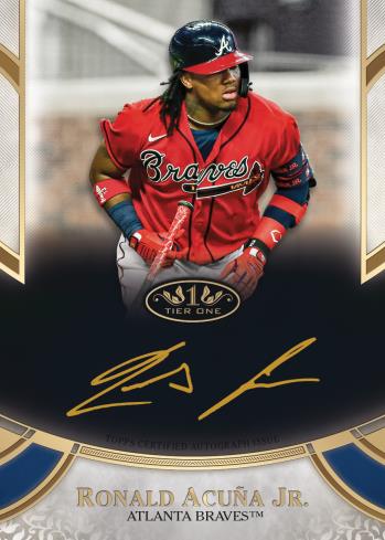 The Basics: Just like this year, each case of this one will include one Tier One Autograph. ... The basic Tier One autos (/199 max) will include Bronze (/25), Silver (/10) and 1/1 Gold ink parallels once again. The Breakout autos (/299) for top 2021 rookies will have those same parallels and volume. Joining them will be Prime Performers ("modern-day greats") autos as well as Tier One Talent (players with elite skills) ink at those same volumes. Also to be found will be Next Level autos limited to just 50 with those same parallels, while dual- (/25) and triple-auto (/10) cards also will be in play. There will be 1/1 cut autos for 25 past legends, while Clear One autos (/10 max) will be joined by Clear One dual autos (/10 max). ... New for autographed Relics will be Perfect Contact bat cards with their sigs signed directly on the jumbo bat pieces. There also will be Autographed Tier One Relics (/99) with dual patches (/25) and 1/1 triple patches as well as dual-auto book Relics (/10) with a 1/1 patch version. There also will be Prodigious Patches autos (/10) with a 1/1 Platinum parallel. ... On the 1/1 auto-mem front there once again will be a few sets -- bat knobs, Limited Lumber (bat logos, nameplates and more), Signature Tools (pen Relics) and cut auto Relics.