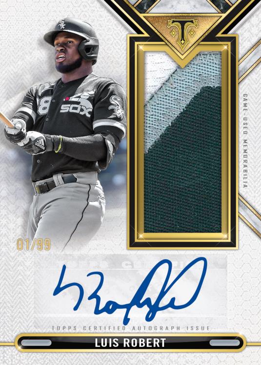 For Relics, there will be new 70 Years triple-payer cards (/9) with Sapphire (/3) and 1/1 Ruby versions as well as standard Triple Threads Relics and Legends cards that start at 36 copies per card. Those will have Amethyst (/27) Emerald (/18), Gold (/9), Sapphire (/3) and 1/1 Ruby parallels for both as in past years. The same will apply for the Relic Combos. Joining them will be 1/1 bat nameplate books and bat knob cards along with single-player 70 Years cards (/9) with 1/1 Ruby versions as well as 1/1 laundry tag books, 1/1 logo Relic cards, 1/1 combo books, Jumbo Plus Relic books (/3) with 1/1 Ruby parallels. New this year will be 1/1 Buttoned Up Relics, while returning Relics also will include Letter Plus and Windows into Greatness (both /3) with Ruby 1/1s. The Windows also will have Gold (/5) parallels. There also will be Deca Relic books (/10) with Gold and Ruby versions. ... Rounding things out will be single jumbo Relics and their autographed versions. The unsigned will start at 48 copies with Amethyst (/36), Emerald (/27), Amber (/18), Gold (/9), Sapphire (/3) and 1/1 Ruby versions. Autos (/99) will have Amethyst (/75), Emerald (/50), Gold (/25), Sapphire (/10) and 1/1 Ruby.