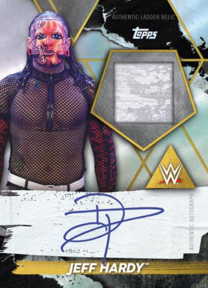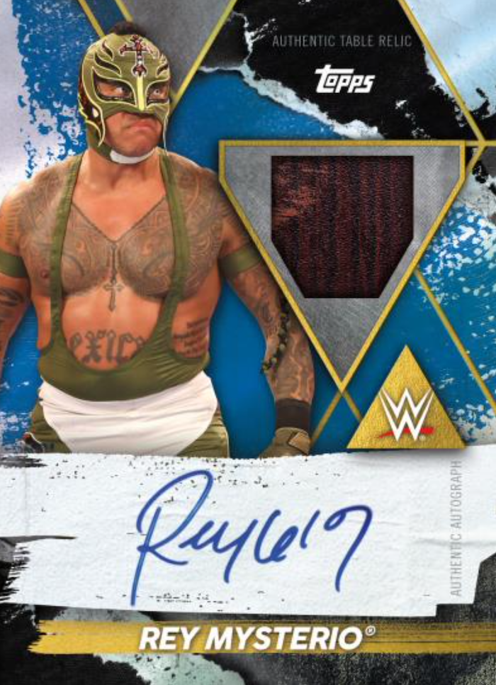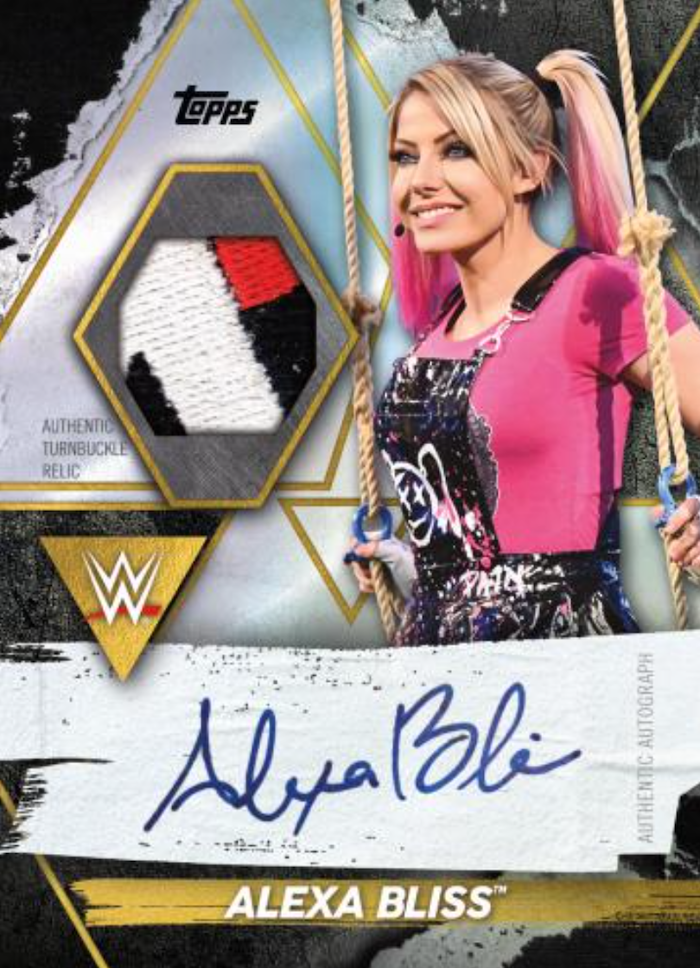 The Basics: New here? Future Stars Autographs showcasing young NXT and WWE stars as well as Legends autographs. Ewacg will have Emerald (/99), Citrine (/75), Onyx (/50), Sapphire (/25) and 1/1 Ruby as well as printing plates. Also in the mix here? Tables, ladders, chairs, and gear Relics that will have Citrine, Onyx, Sapphire and Ruby versions at the same volumes. Joining them will be jumbo mat Relic autos, turnbuckle Relic autos and new match-used trash can auto Relics with the same full rainbow as the autos.