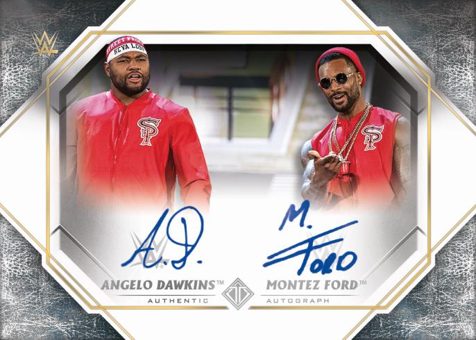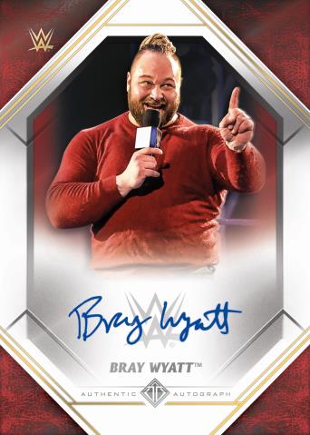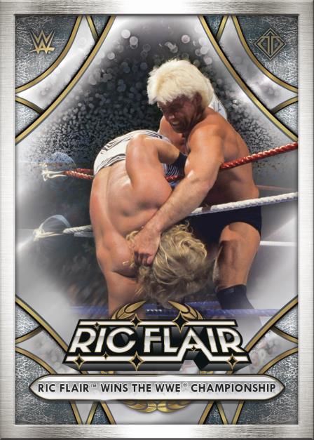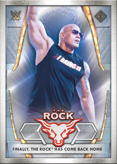 The Basics: Every box will include a new set of 50 Transcendent Icons base cards (past and present stars) as well as a 50-card set of on-card autographs with one 1/1 autograph guaranteed. New this time? Each box will include one over-sized quad autograph of The Four Horsewomen (Sasha Banks, Becky Lynch, Bayley and Charlotte Flair), a 25-card Legends set for The Rock, a 25-card Legends set for Ric Flair, one autographed original WWE Garbage Pail Kids art card, one autographed art print, one autographed championship replica and, of course, one VIP party invitation. ... The autographs (/25) will showcase "some of the greatest Superstars in WWE" with Green (/15), Purple (/10), Blue (/5) and 1/1 Red versions as well as 1/1 Superfractor autos. ... The Four Horsewomen autos will be limited to 25 copies with the same rainbow of parallels but no Supers. Tag Team autos will also be in play with the full parallel rainbow. ... Original GPK x WWE art will be found from Joe Jimko and Bret Engstrom while autographed art prints from Rob Schamberger will be in every box, too. ... A signed deluxe replica championship will be found in every case from a star who reigned. ... The VIP invitation is good for the holder to attend an event where there will be WWE stars as well as a ticket to an event.