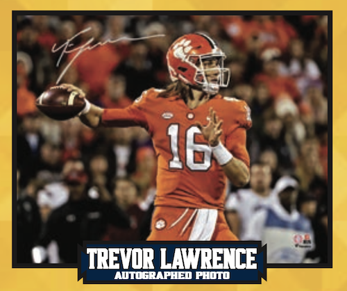 The Basics: There will be just 200 cases made for this one and there are a number of randomly inserted Gridiron Tickets good for autographed items that are beyond a standard signed photo. Among them? A Trevor Lawrence signed jersey, a Tom Brady autographed and multi-inscribed helmet, an Aaron Rodgers inscribed helmet and a Jerry Rice jersey for starters. ... There will be six Hall of Famers, two football favorites, two current stars and five players with a "place in football history" in every case. Every photo is authenticated by TRISTAR, JSA, BAS or PSA/DNA in this release. ... Among the standard autographs to be found here will be Brady, Patrick Mahomes, Peyton Manning, Lawrence, George Kittle, Barry Sanders, Jim Brown, Dak Prescott, Walter Payton, Joe Namath, Rodgers and Brett Favre.
