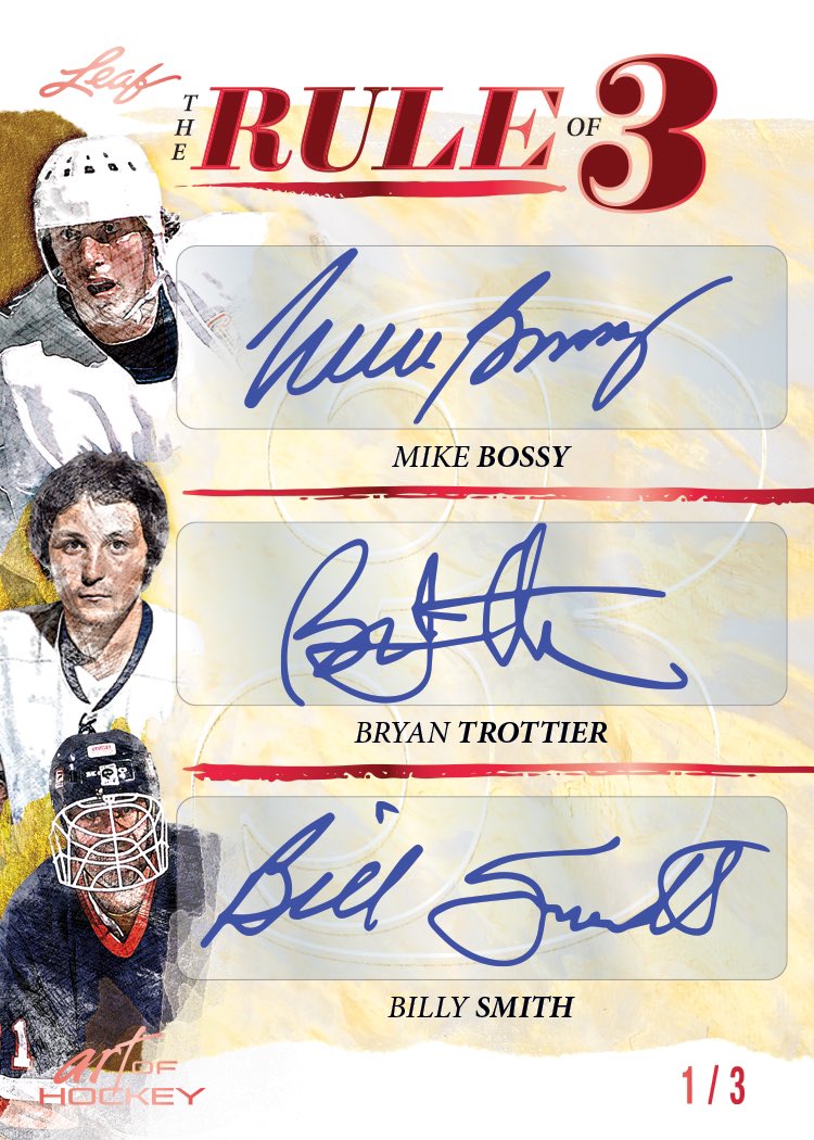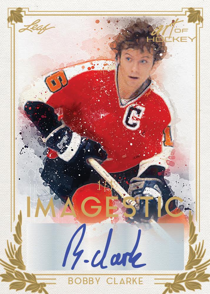 The Basics: Among the sets in this one will be base autographs -- two versions per player (action or portrait) -- and they will joined by Art Of A Champion, Walk On Water, Visual Art, Imagestic, Iconography, The Rule of Three, Quadography, Eight Wonders Of The World, Retired Remnants dual-memorabilia cards, Museum of Materials jumbo memorabilia cards, Objt d'art memorabilia cards, Paint By Numbers memorabilia cards and Artis Opus 1/1s that will include patches, logos, tags, gloves, pads and even skates from some legendary players. (Not all sets are in the gallery below.) Among the teased autographs to be found here? Gordie Howe, Mario Lemieux, Guy LaFleur, Eric Lindros, Mark Messier, Bobby Clarke, Marian Hossa, Brett Hull and Teemu Selanne for starters.