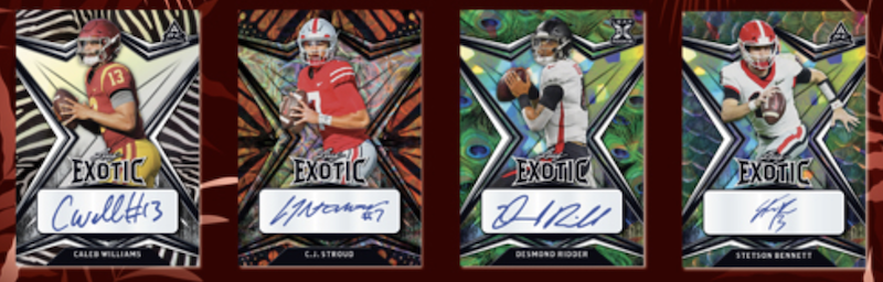 The Basics: All autos in this one will have an animal print theme -- Tiger, Snakeskin, Zebra, Peacock, Giraffe, Snow Leopard, Elephant, Giraffe and Butterfly for starters. Signers will include Hall of Famers, NIL players who are primed to be NFL draft picks and current rookies. Among the teased names here? Bryce Young, Joe Montana, Joe Burrow, Caleb Williams, Bijan Robinson, Hendon Hooker and more in the gallery below.