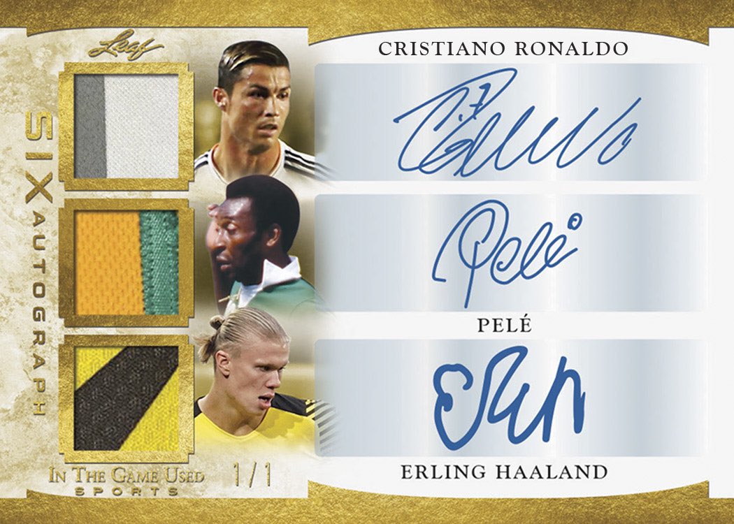 The Basics: There will be nothing but hits in this one with more than two dozen different sets in all here -- a mix of autographed, multi-auto, memorabilia and multi-memorabilia cards with some of the biggest names in sports history to be found. Among the sets will be ... 1960 Leaf, Captains, Cinderella, Game-used Memorabilia (single, dual, triple and quad), Grip and Rip, Hall of Fame Caliber, In The Game-used Autos (single, double, triple and six), Back 2 Back, Vignette, With The First Overall Pick, Legendary Locker Room, Super Swatch Signatures, In The Name-used, jumbo patch, Memorabilia Madness, Reign of Champions, Ring Leaders, Sole Man, Sports Lore, Team Utopia, The Chosen Few, The Grand Salami, The Legendary 200, The Cathedral, Time Worn and Once Upon A Time In. ... Among the teased signers here are Ken Griffey Jr., Erling Haaland, Maria Sharapova, Troy Aikman, Emmitt Smith, Joe Montana, Roger Craig, Julius Erving, Sandy Koufax, Albert Pujols, Ichiro Suzuki, Allen Iverson, Steph Curry, Tony Parker, Lionel Messi, Pele and Cristiano Ronaldo for starters.