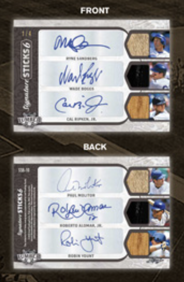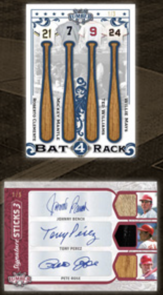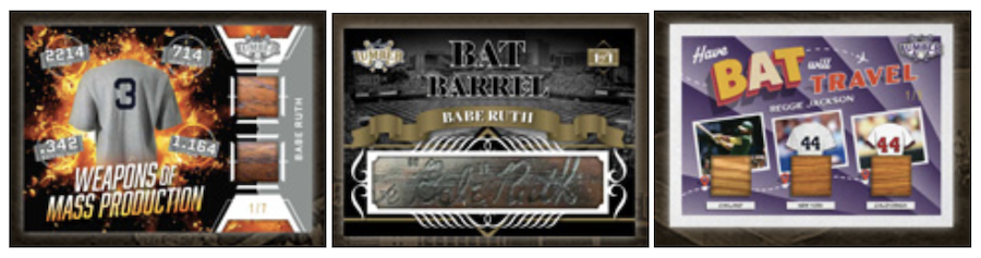 The Basics: There are more than 30 different sets teased within this one with autographs and big memorabilia among them. A rundown: Game-used Lumber, Bat Speed, Contract Hitter, Sultans of Swing, The Hit Kings, Bat Rack (three, four and eight pieces), Bat Rack Rivals, Signature Sticks (also with two, three and six versions), Bat Barrell, Double Barrel Dual, Bat Barrel Signatures, Bat Knob, Off The End of The Bat, Lumber Lineage, Stat Bats, Have Bat Will Travel, Legendary Lumber Lineup, Silver Sluggers, Lumber Team Eights, MVP Seasons, Historical Home Runs, The Examplars, The Hall, Weapons of Mass Production, Lumber Marks and HR Kings. Some of the teased players here include Babe Ruth, Reggie Jackson, Ryne Sandberg, Hank Aaron, George Brett, Mike Schmidt, Chipper Jones, Mel Ott, Roy Campanella, Mickey Mantle, Roberto Clemente, Willie Mays, Wade Boggs, Cal Ripken Jr., Fernando Tatis Jr., Johnny Bench, Pete Rose and Ted Williams.