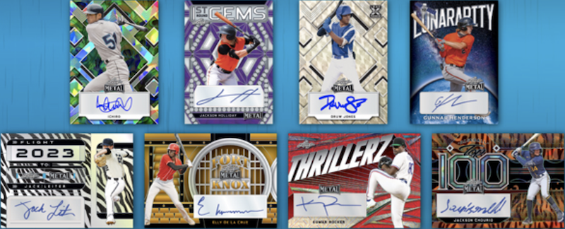 What's buzz-worthy: Metal is back for another go with two formats -- some exclusives in each -- and a mix of colorful autographed cards showcasing stars from the past, present and future.