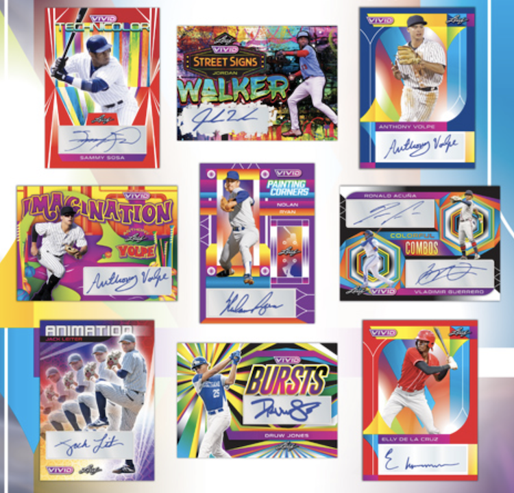 The Basics: This one will have a print run half of previous brands released in this ink-only format. No set or parallel details were released for this one but among the subsets/inserts appear to be Bursts, Animation, Imagination, Painting Corners, Colorful Combos, Street Signs and Technicolor. Among the teased autos here? Sammy Sosa, Druw Jones, Jack Leiter, Anthony Volpe, Vladimir Guerrero Jr., Ronald Acuña Jr. and Nolan Ryan for starters.