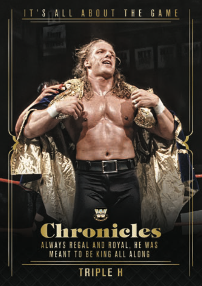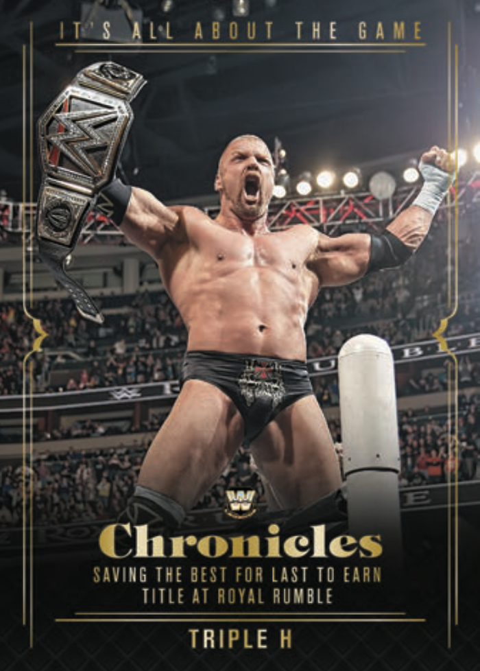The Basics: More than 20 brands will be found in this one with just 48 cards per hobby box and hobby-only brands will include Noir, National Treasures and Gala for basic cards and then Tools of the Trade, Silhouettes, Origins and National Treasures for hits. ... There also will be a hobby-only Triple H Tribute set that's "All About The Game" here -- 50 cards. No other details were added. ... Boxes will carry a suggested retail price of $130.