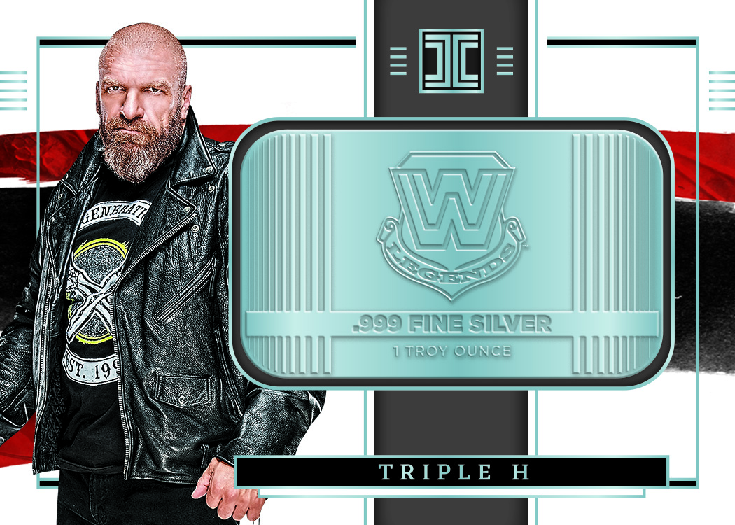 The Basics: There will be one "unique insert" per box along with the five autos and three other cards. ... Among the on-card auto sets here will be Wrestlemania Signatures, Hall of Fame Signatures and Impeccable Championship Debuts, while auto-mem sets will include Elegance Memorabilia autos and rookie autos with parallels that will include Platinum, Silver and Gold cards with prime versions. ... Stainless Stars metal cards will be found here along with WWE Legends cards with one-ounce silver inlays as well as half-ounce gold-logo inlay cards. ... Both past and present stars will be found here. Base set and parallel details were not detailed in advance. ... Boxes carry a suggested retail price of $500.