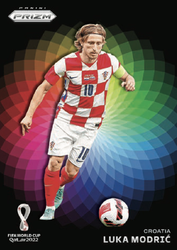 The Basics: Hobby boxes of this one will include four numbered parallel cards, two Silver Prizms, six more parallels, 10 inserts and two Silver parallel inserts atop the base and ink here. ... The base set will consist of 300 cards with all 32 teams represented and a huge parallel rainbow. It was not detailed in advance but one will be Maroon (/22) "in honor of the predominant color of FIFA World Cup Qatar 2022." ... Among the inserts will be Scorers Club, New Era, Connections, Phenomenon, Global Reach and Team Badges, while on the "ultra rare" side will be National Landmarks cards. Joining them will be "short-printed" inserts -- Manga, National Pride, Color Wheel and the World Cup mascot. ... For ink, there will be at least two sets -- Signatures and Dual Signatures -- with "some of the biggest stars of international soccer, past and present." Among the teased names are João Félix, Lautaro Martínez, Lionel Messi, Neymar Jr., Carlos Tevez, Wayne Rooney and Kylian Mbappé. Duals will pair teammates or players from the same country. ... Boxes carry a suggested retail price of $250.