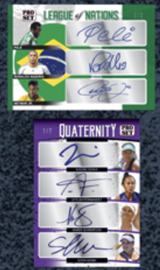 The Basics: Ink from more than 100 of the "most-amazing athletes from all over the world past and present" will be in this one with at least nine different sets in play with designs playing off of early 1990s Pro Set releases. The lineup will include base autos, Action Ink showcasing styling photography, Pro Set Portraits illustrated cards, All-Power Team, Dualistic, Dream Fight, Triple Threat, League Of Nations and Quadernity. Among the teased signers for this one? Erling Haaland, Sandy Koufax, Naomi Osaka, Tony Hawk, Steph Curry, Pele, Kevin Garnett, Mike Tyson, Floyd Mayweather, Ichiro Suzuki, Magic Johnson, Amanda Nunes, Nolan Ryan, Julius Erving, Hulk Hogan, Ric Flair, Steve Austin, Shaquille O'Neal and more. A small sampling is in the gallery below.