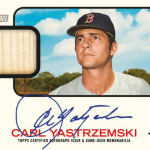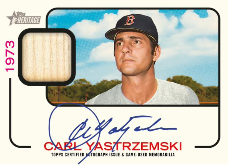Real One Autographs return with on-card ink and Red (/73 max) parallels along with duals (/25 max) and triples (/5) and on the auto-Relic front, there will be Clubhouse Collection Auto Relics (/25) with 1/1 Patch parallels that are hobby-only along with duals (/10 max) with a 1/1 Patch versions (hobby-only). There also will be Flashback Auto Relics with a 1/1 parallel as well as be baseball and celeb cut autograph sets. For standard Relics, there are Clubhouse Collection cards with Gold (/99) and 1/1 Patch parallels along with dual (/73), triple (/25) and quad (/10) cards all also with 1/1 hobby-only patch versions. Also in there will be Mint coin cards with Nickel (/15), Dime (/10), Quarter (/5) and 1/1 half-dollar versions all using 1973 coins. Joining them will be stamp Relics (/50).
