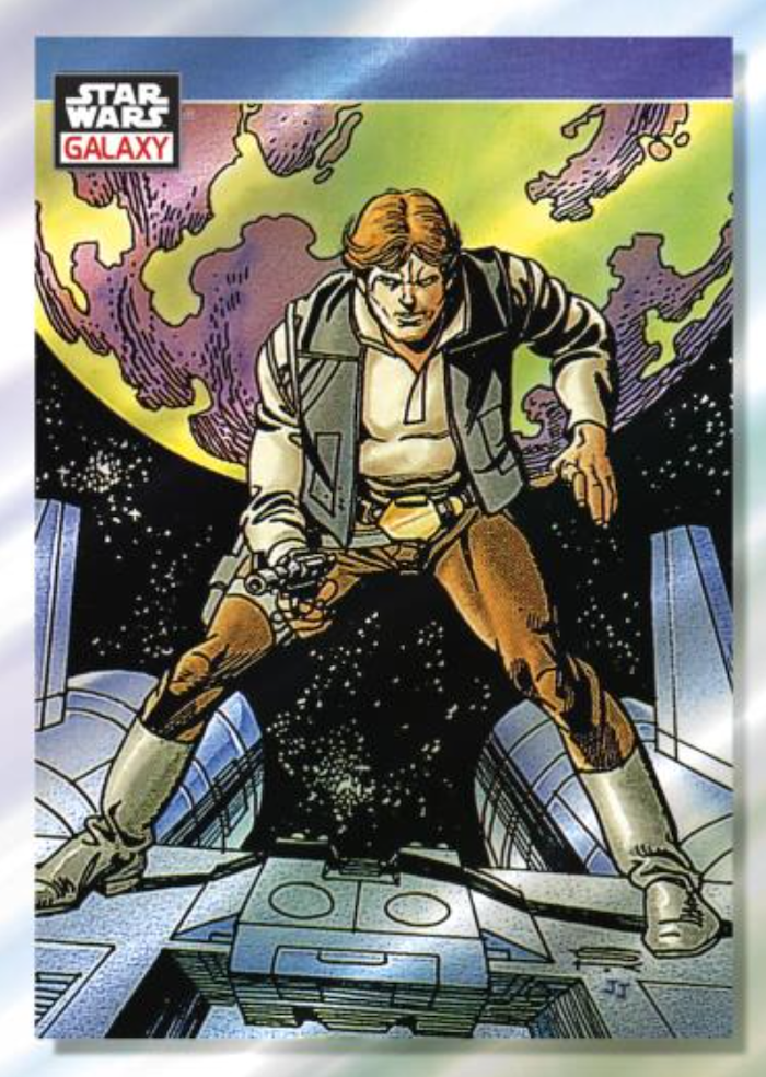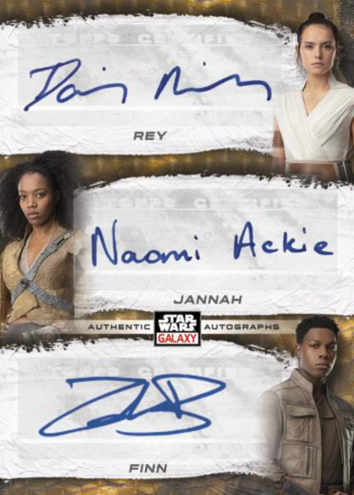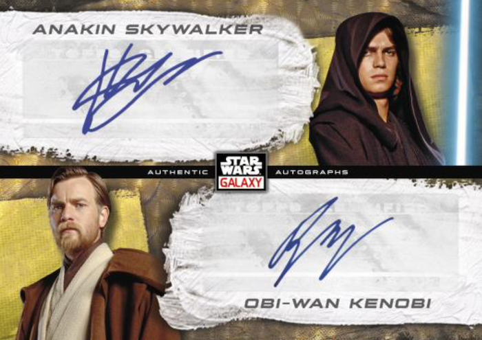 The Basics: The 100-card base set will feature art from past Galaxy releases as well as new creations with three new insert sets, some variations and the hits. The Refractor rainbow will include standard (one per pack) along with Atomic (/150), Wave (/99), Prism (/75), Mojo (/50), Purple (/25), X-Fractor (/10), Red (/5) and 1/1 Superfractor just like last year. ... Some cards also will have variations. ... The inserts will include Original Trilogy Concept Art, Retro Rewind (art from Star Wars: Droids and Star Wars: Ewoks animated series) and Gameplay Galaxy (video game artwork). These will have a smaller parallel rainbow -- Green (/99), Purple (/50), Orange (/25), Red (/5) and 1/1 Superfractors. ... For autos there will be standard, Blue (/150), Green (/99), Purple (/50), Orange (/25), Red (/5) and 1/1 Supers just like last year. There also will be dual- and triple-auto cards in the mix with duals having Red and Super versions. Triples will only have Superfractor parallels.