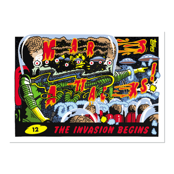 What's buzz-worthy: This popular Project artist takes on Topps' long-running non-sports brands with an online-only release of his own where he slices and dices into the Garbage Pail Kids, Wacky Packages, Mars Attacks and more all in one spot.