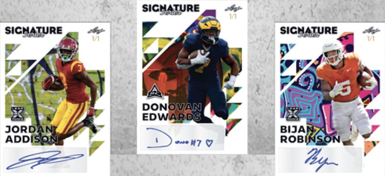 What's buzz-worthy: Leaf Signature Series returns to the gridiron once again with just one 1/1 autographed card per pack and a mix that includes past, present and potential future stars all together in the same spot.