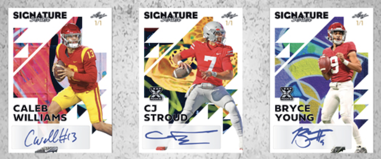 The Basics: Every card in this one is a 1/1 autograph with a mix of NIL players, new draft picks and greats. Among the teased names are Barry Sanders, Justin Herbert, Randy Moss, Drew Brees, Andy Reid, Brock Purdy, Dan Marino, Joe Burrow, Brett Favre, Bryce Young, Caleb Williams, Quinn Ewers, C.J. Stroud, Jordan Addison, Donovan Edwards, Anthony Richardson, Will Levis, Hendon Hooker and Bijan Robinson. Pattern parallels will likely be in play here but with all on 1/1 cards.