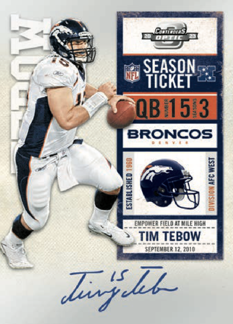 The Basics: A typical box of this one will include two autographs, two base cards, one insert and one Season Ticket or Rookie Ticket parallel card. ... Among the finds will be Rookie Ticket RPS auto, All-time Contenders autos, 2003 Contenders Throwback rookie autos, 2013 Contenders Throwback rookie autos and 2010 Contenders Tribute autos. Also in there will be rookie patch autos and, for starters, insert sets that include Legitness, Now Contending, Up and Coming, Optic Illusions, Splitting Image, Lottery Ticket and First Class Ticket. ... Parallels will be in play across the board on all but were not detailed in advance -- some of the colors/textures will include Neon Marble, Blue, Black Scope, Gold Vinyl and Nebula. ... There will typically be one Rookie Patch Autograph per case as well as one case-hit insert from the Induction Ticket Autographs, Legitness and Now Contending sets. ... Boxes carry an increased suggested retail price of $275.