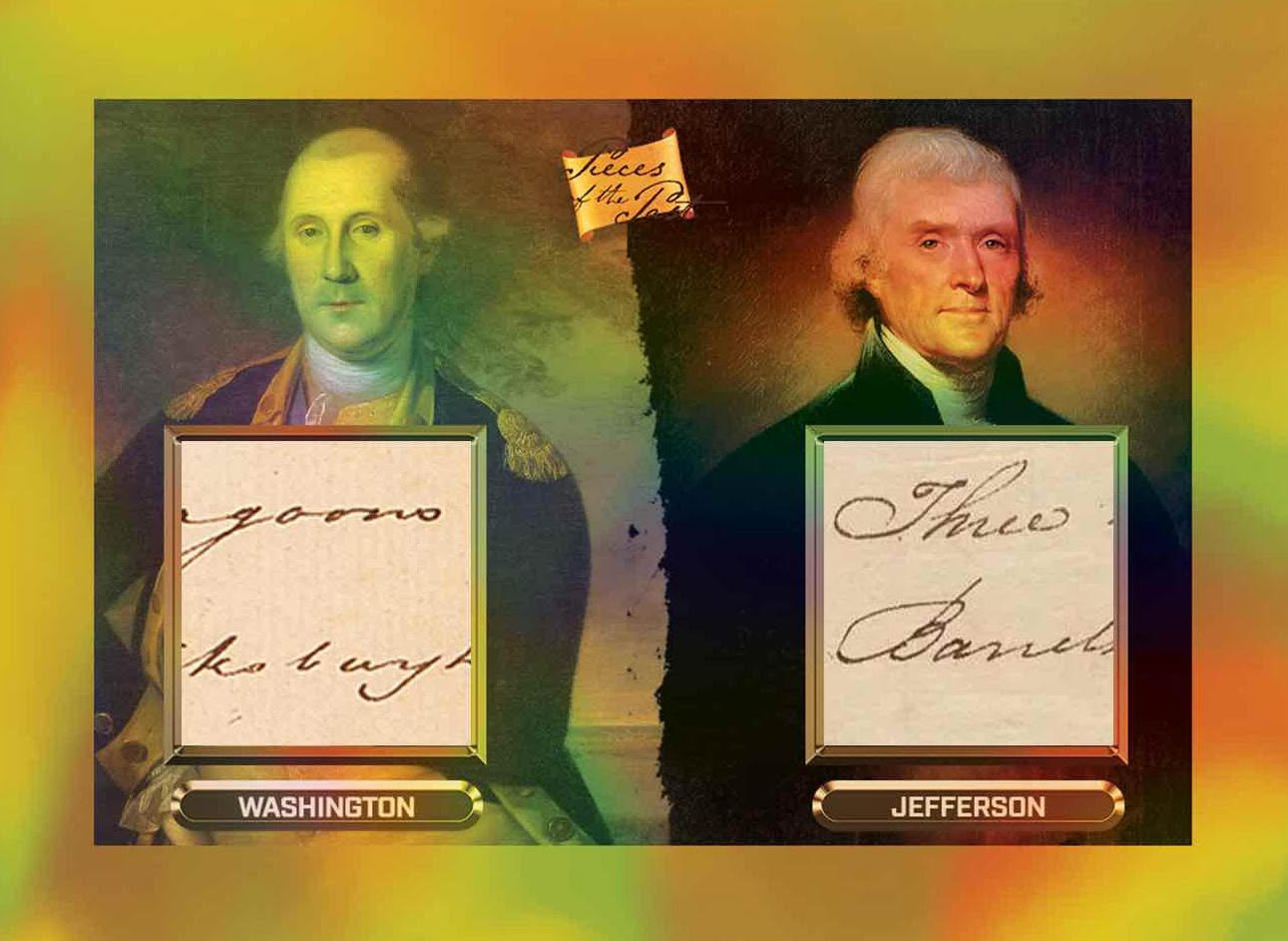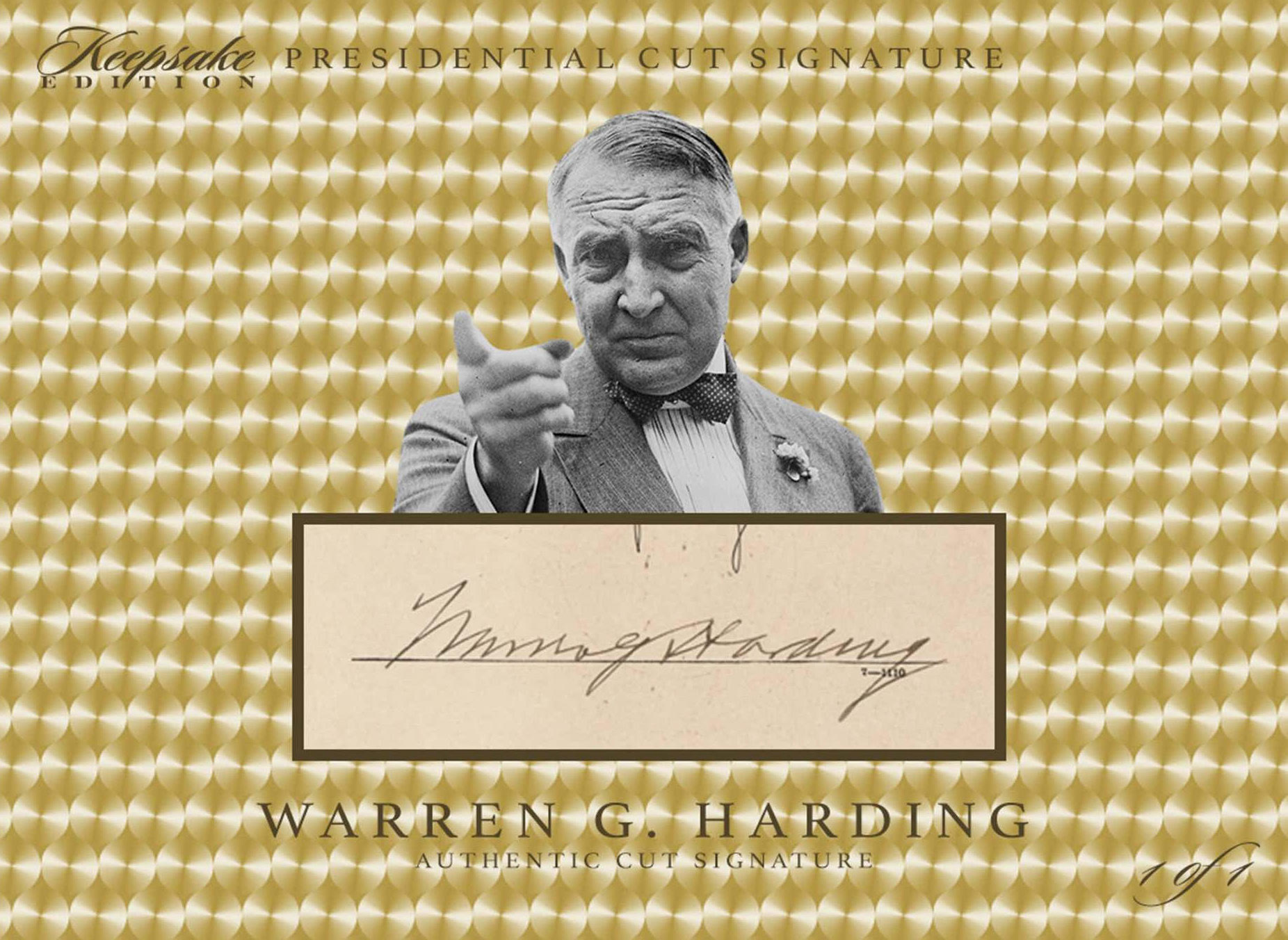 The Basics: All cards will all be printed with a mirror stock with parallels including Gold (/10) and 1/1 Red apparently across all sets. Among the inserts/subsets will be Ovalocity die-cut cards, Presidents In Sports, Portraits, Pop Art and Posters cards. ... Relics will be embedded into cards in this one and that will include singles, duals and triples for starters. Among the inclusions will be handwriting samples, signed documents, land grants, presidential seals, coins, currency and newspaper clippings for starters. Also in play will be 1/1 cut autographs for Abraham Lincoln, William McKinley, Barack Obama, Warren Harding, Bill Clinton, George W. Bush, George H.W. Bush, Ronald Reagan, Gerald Ford and Donald Trump for starters. A small sampling of the possibilities is below with 215 cards in the lineup and all presidents included. ... Six-pack boxes carry a suggested retail price of $75.