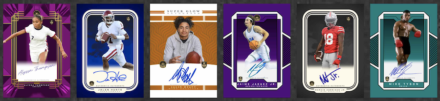 What's buzz-worthy: Super Glow once again turns to a one-auto-per-box approach with a new multi-sport release packed with star power. How much? Each case will include one of the names you see above and there will be Hot Cases with a 1/1 card in every box out there, too.