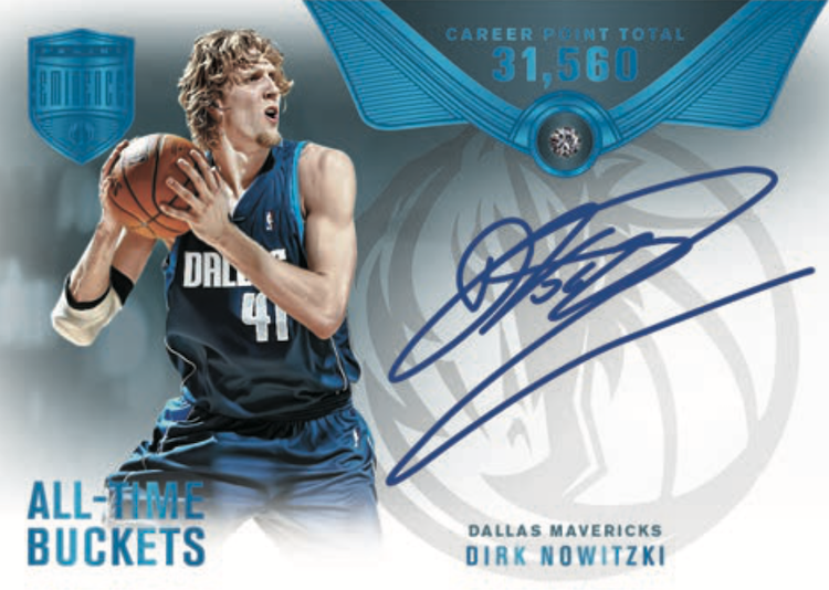 The Basics: Patch Autos lead the way here with rookie patches, Logoman autos and special patch autos all teased. Also in play will be Larry O'Brien Trophy metal inlay cards with silver, gold and platinum as well as Optimum and All-Time Buckets diamond cards. Among autograph-only cards are dual-signed cards with past and present stars among them -- NBA Champions and Legendary Combos for starters. ... These boxes carry a suggested retail price of $10,000.