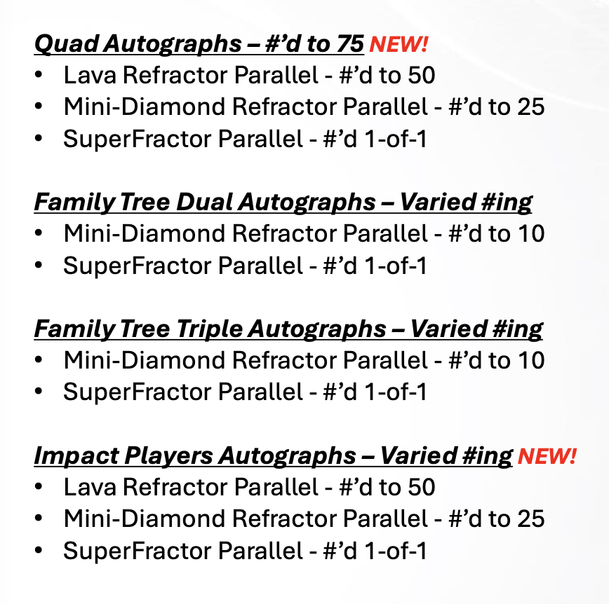 Box basics: Four autographs per 12-pack box (eight boxes per case)