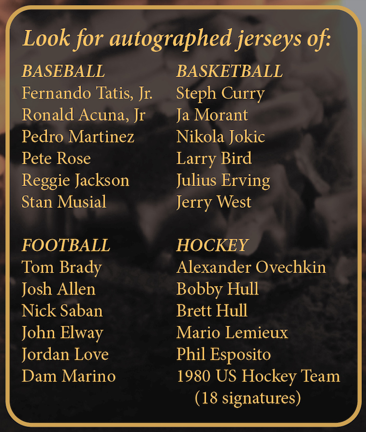 Box basics: One autographed replica jersey per box (16 boxes per case)