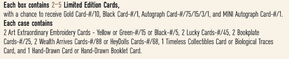 Box basics: Two to five "limited edition" cards per 50-card box (10 boxes per case)