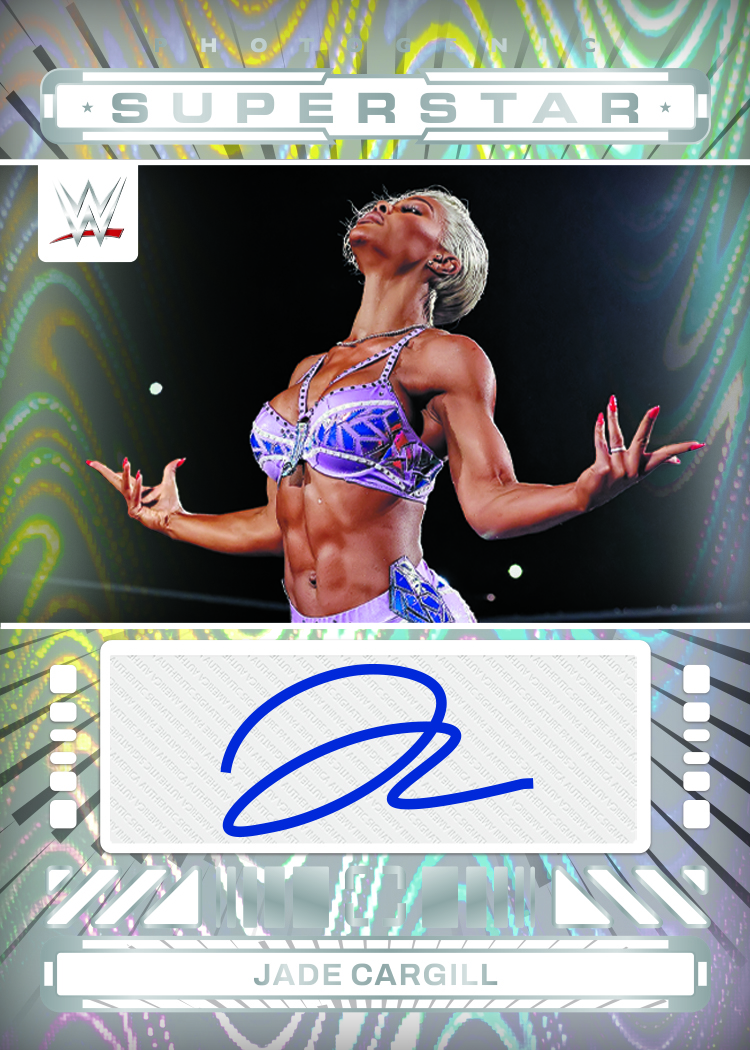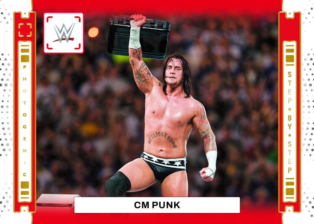 The Basics: There will be nine inserts per 50-card box in this one, according to early info. It will include "unique inserts that highlight the most image-worthy moments in WWE, including major ladder matches, entrances, championship titles and finishing moves" but no other details were released other than what's seen in images below -- Championship Feels and Step By Step cards. ... PhotoGenic Superstars autos will be in play with dual-auto cards also in the mix, maxing out at 25 copies per card on those.