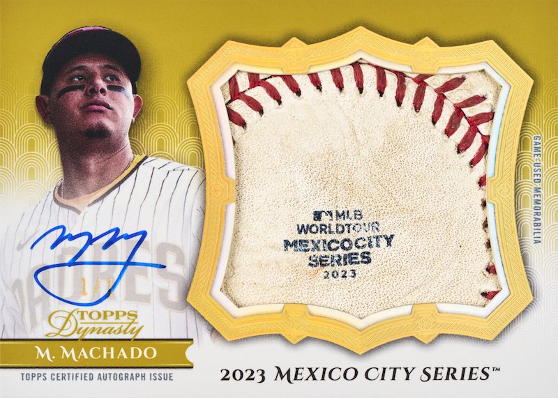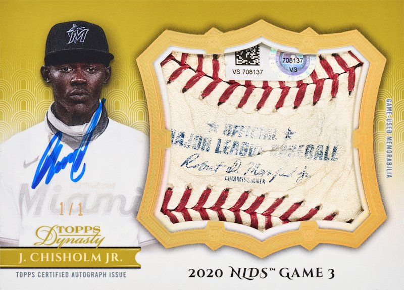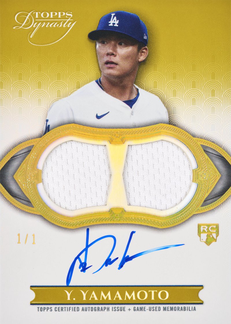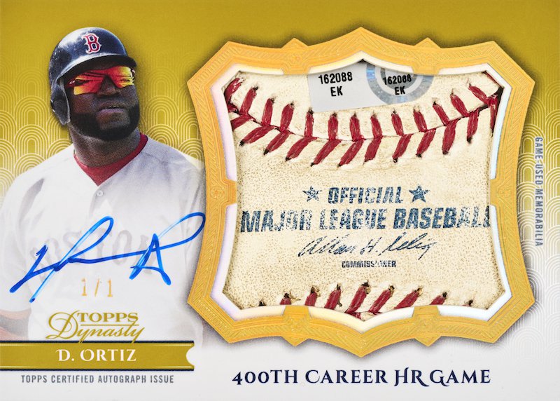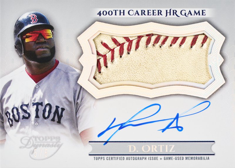 The Basics: In the past, Dynasty Autographed Patches were limited to 10 copies per card with pieces of game-used jersey patches, special-event baseballs and batting gloves in the mix. In play will be 1/1 cut autos as well as autographed jumbo patch cards (/5) with larger pieces and 1/1 Gold parallels.