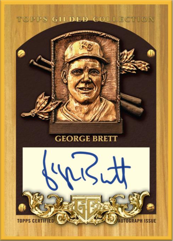 For autographs, there will be Gold Framed Hall of Famer autos (/99) with Rose Gold (/50), Emerald (/25), Onyx (/10), Ruby (/5) and 1/1 Platinum versions. Joining them will be Gallery of Gold autos (/50) with the same parallels but no Rose Gold. ... Also in play will be Gilded Champions (/50) and Chrome Gold Autographs (/99) as well as Gilded Hall of Fame Plaque autos (/25). Parallels on Gilded will include Emerald (/25), Onyx (/10), Ruby (/5) and 1/1 Platinum, while the Plaques will have only Onyx, Ruby and Platinum. The Chrome Gold ink will include Yellow-Gold (/75), Blue-Gold (/50), Rose Gold-Gold (/25), Red-Gold (/5) and 1/1 Supers.