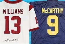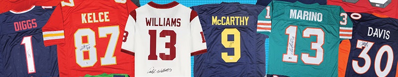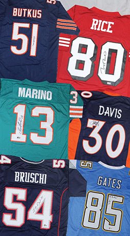 The Basics: The standard lineup here includes two Hall of Famers, two current players and one "football favorite" as the typical case in these blind-box releases. As always, all autographs are authenticated by TRISTAR, PSA/DNA, Fanatics, BAS or JSA. ... Among the teased names? Tom Brady, Patrick Mahomes, Caleb Williams, J.J. McCarthy, Brock Bower, Jerry Rice, Dick Butkus, Dan Marino, Terrell Davis, Tedy Bruschi, Antonio Gates, C.J. Stroud, Bijan Robinson, Christian McCaffrey, Blake Corum, Travis Kelce, DK Metcalf and Stefon Diggs for starters. Some stars' college jerseys will be worked into the mix along with NFL jerseys.