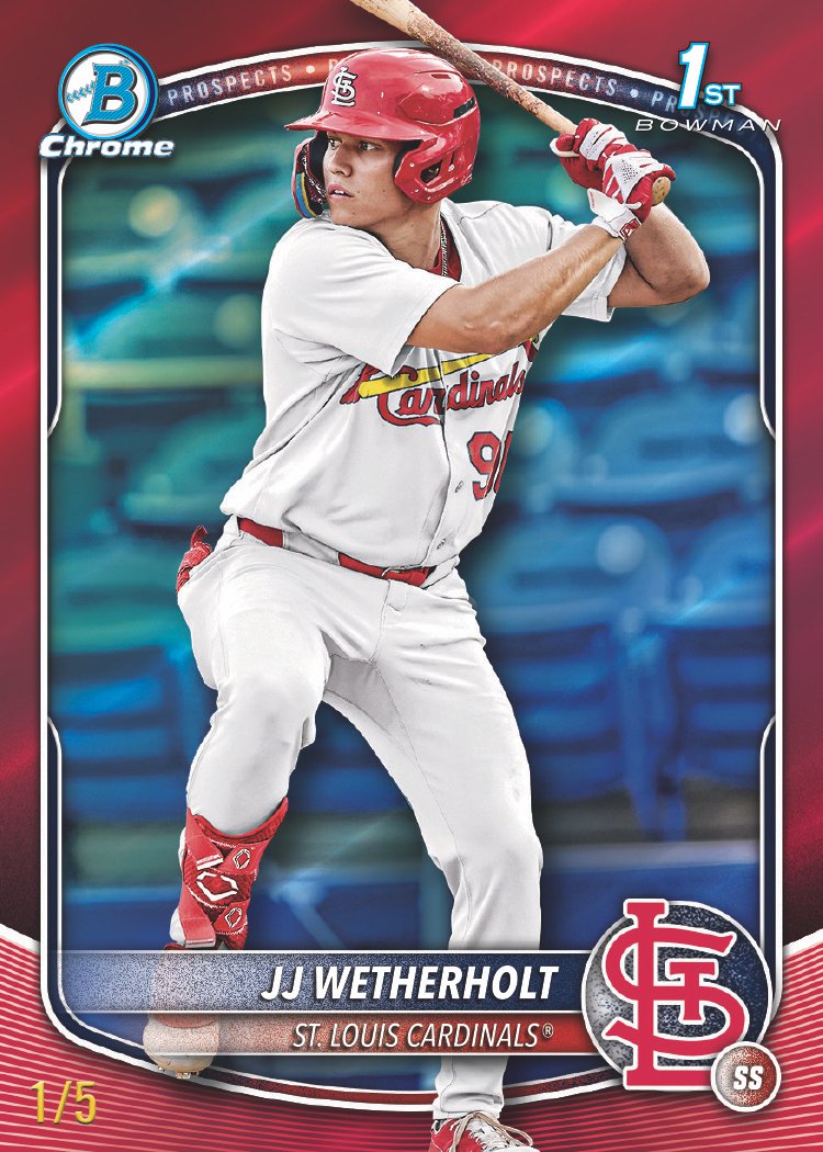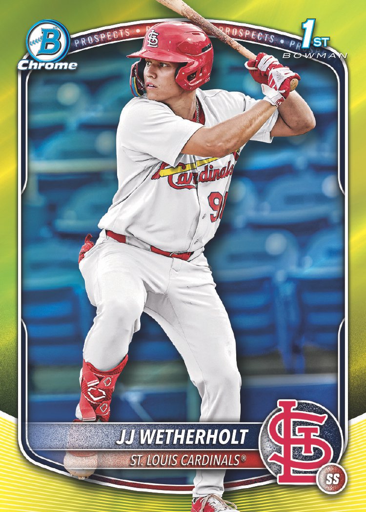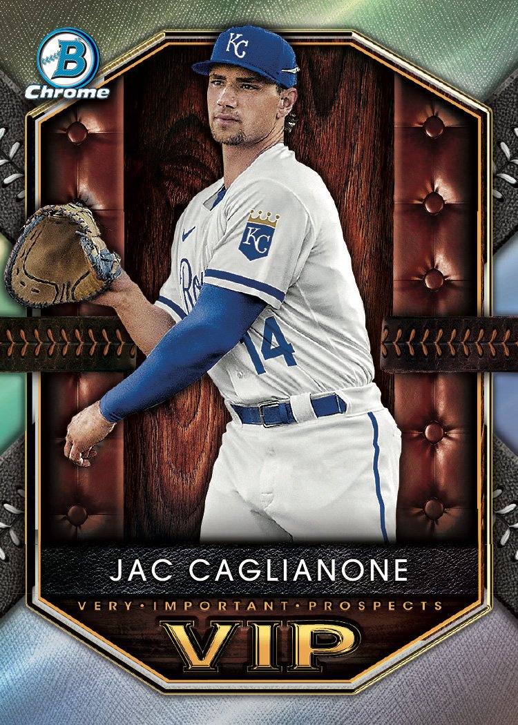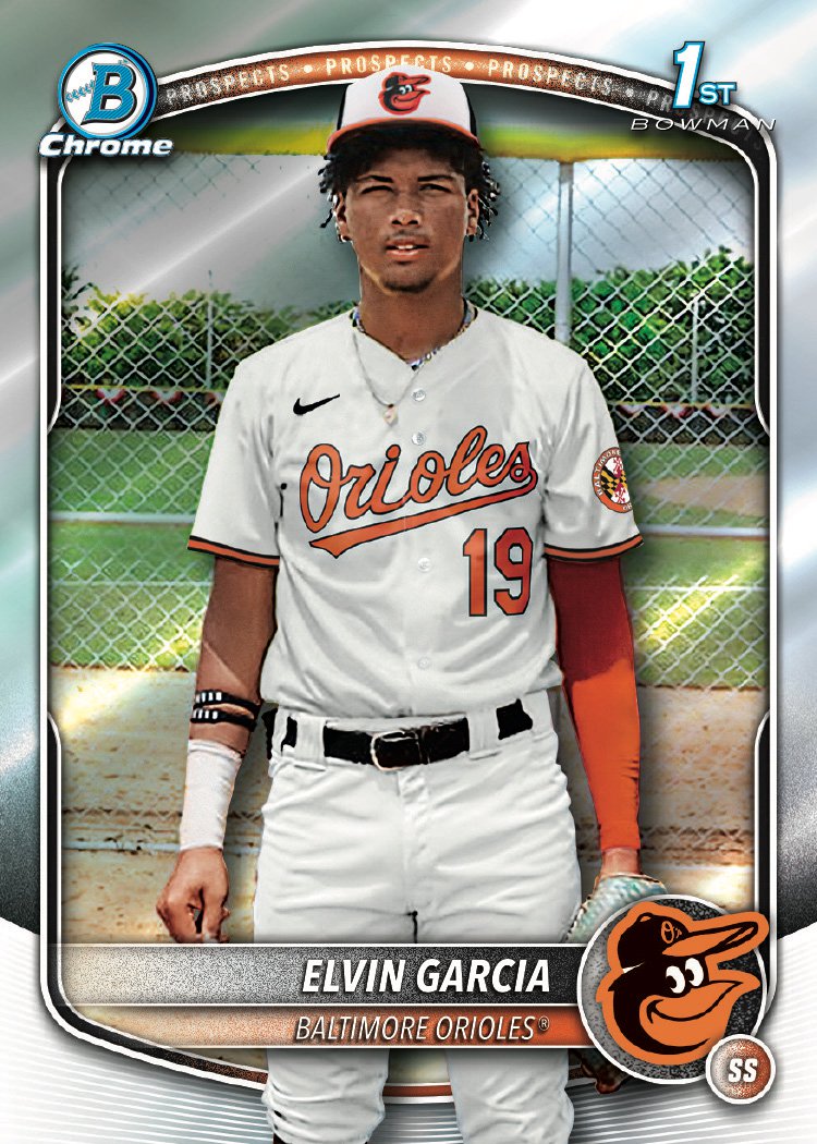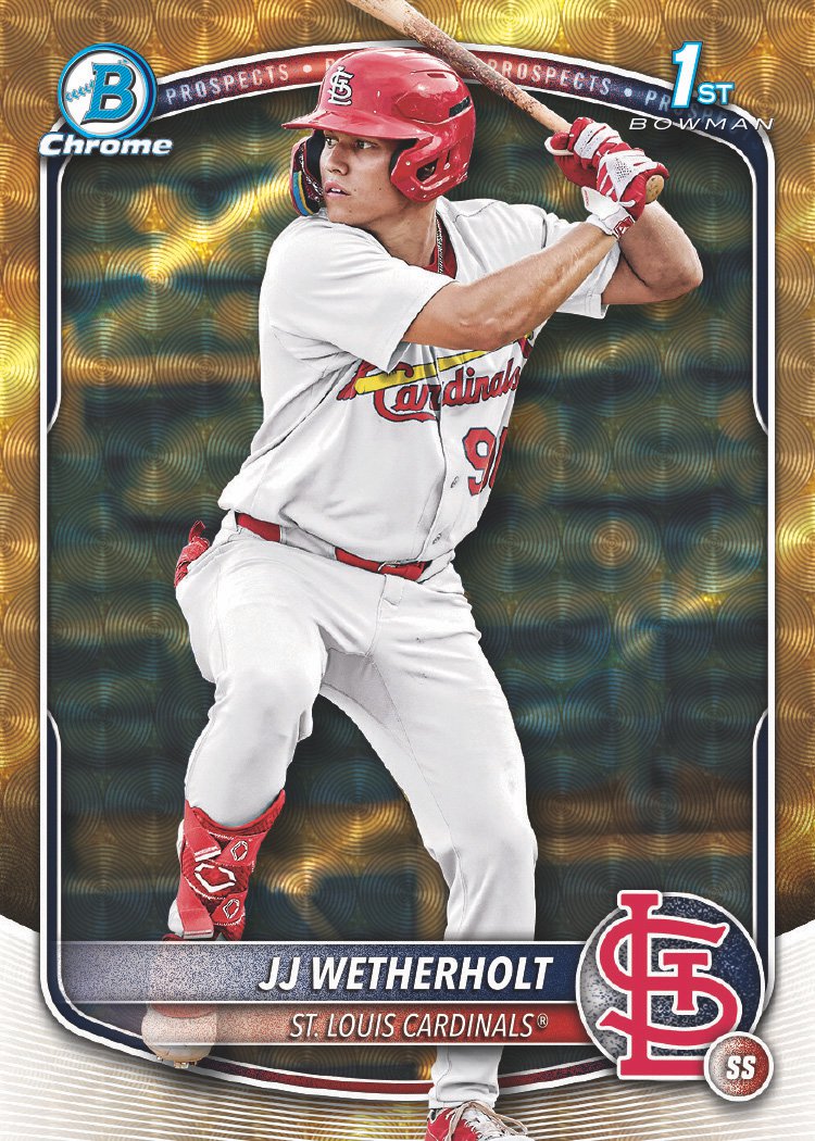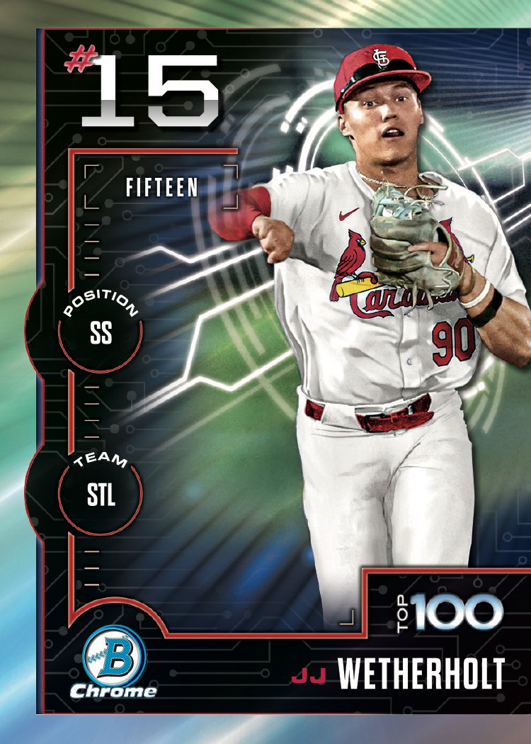 Update (April 9): The base set here will include 100 veterans and rookies, while the prospects set and its Chrome counterpart are 150 cards. A pair of Retrofractor variations will be found for Brooks Robinson and Steve Carlton in this one (see checklist link up top) and other finds will include Etched In Glass variations, Bowman Spotlights, Anime (some with Kanji variations), Bowman Scouts Top 100, ROY Favorites, Hobby Stars, Very Important Prospects, Rockstar Rookies, Crystalized and Greatness Loading. (See parallels in play on the odds file linked above.)