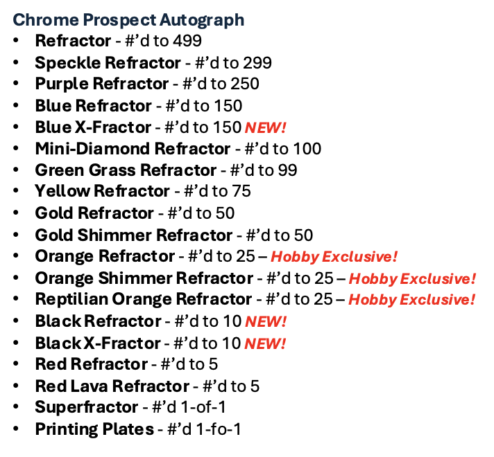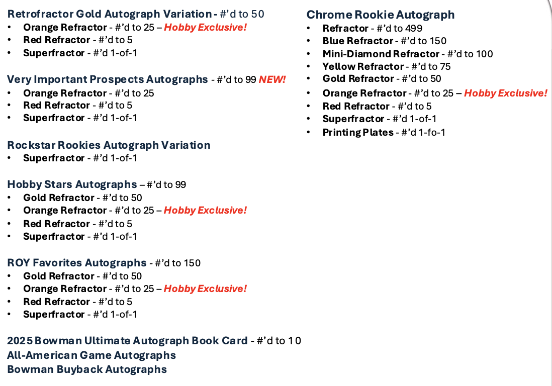 - 2025 Bowman Baseball, Chrome Rookie Autographs
