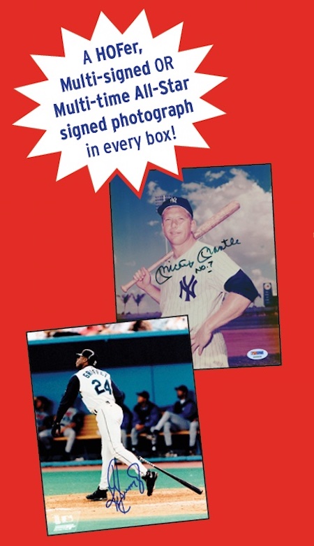 The Basics: All photos in the release will be 8-by-10s authenticated by Historic Autographs, PSA/DNA, BAS or JSA. There will be more than 1,200 Hall of Famer autos in this product, more than 50 multi-signed photos and a number of rarer, high-demand autos in there, too, according to the company. ... Among the teases autos here were Mickey Mantle, Ken Griffey Jr., Kirby Puckett and Joe DiMaggio along with some other notables seen in the gallery.