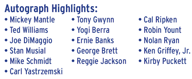 Box basics: 12 autographed 8-by-10 photos per box (12 boxes per case)