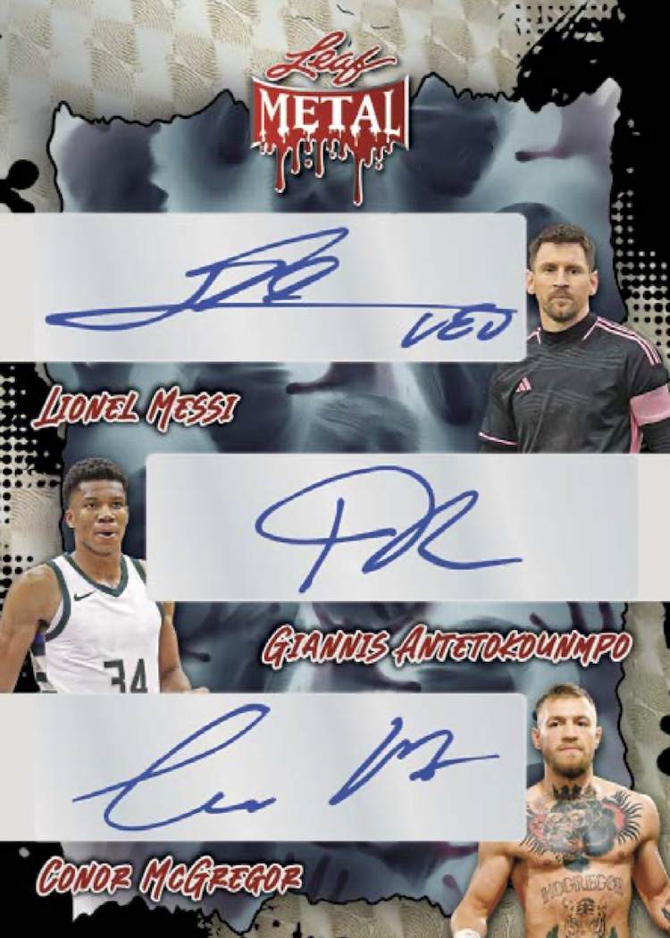 There will be three autos per case among these names: Barry Sanders, Bo Jackson, Charles Barkley, Chuck Norris, Conor McGregor, Cristiano Ronaldo, Dan Marino, Emmitt Smith, Floyd Mayweather Jr., Gal Gadot, Giannis Antetokounmpo, Hulk Hogan, Kate Beckinsale, Ken Griffey Jr., Larry Bird, Lionel Messi, Mike Tyson, Nicholas Cage, Nolan Ryan, Peyton Manning and Robert De Niro. ... And there will be three autos per case from these names: Bob Cousy, Brett Favre, Brooks Koepka, Cameron Boozer, Cameron Brink, Danny Trejo, Drew Barrymore, Drew Brees, Ja Morant, Ja’Marr Chase, John Carpenter, John Elway, Justin Jefferson, Livvy Dunne, Kevin Garnett, Russell Wilson, Sissy Spacek, Alan Ritchson, Andy Reid, Anna Leigh Waters and Charles Leclerc.
