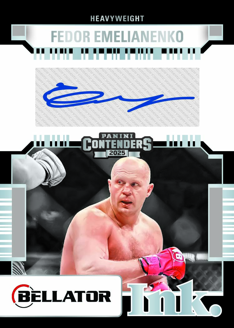 The Basics: There will be 12 insert cards and four autos in every 32-card box -- so that's 16 base cards per box. Season Ticket cards will have parallels -- not detailed in full in advance but they will include 1/1 Championship Tickets and Cracked Ice Tickets (/25). ... Among other finds will be Voices Of The Cage, For The Win, Supernatural, Crown Jewels, 2004 Throwback and Superstar Die-cuts with parallels in play. ... Among the autos will be Bellator Ink, Champion Ticket Signatures and Main Event Ticket Signatures. ... Among the past and present stars found here will be Fedor Emelianenko, Randy Couture, Tito Ortiz, Chael Sonnen, Frank Mir, Ken Shamrock, Cris Cyborg, Francis Ngannou, Biaggio Ali Walsh, Paul Hughes, Nathan Kelly, Randy Couture, Dakota Ditcheva and Usman Nurmagomedov for starters. ... Boxes carry a suggested retail price of $80.