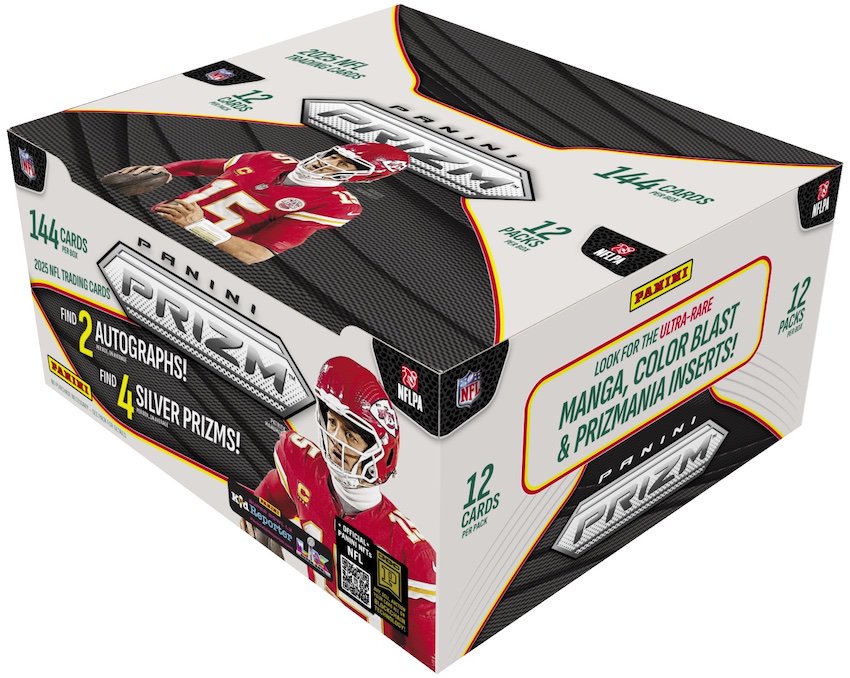 The Basics: The format is the same as past years with the autos and base joined by 10 serial-numbered Prizms per box along with 24 Rookie Cards, four Silver Prizms (one a rookie) and the five other inserts. The set size and parallels were not revealed in advance. ... Among the finds here will be "iconic super-short printed" Color Blast, Color Blast Duos and Manga cards in both horizontal and vertical versions. Joining them will be Emergent, Prizmatic, Prizmania and Prizm Break and there also will be rookie patch autos in play. ... Boxes will carry a suggested retail price of $465.