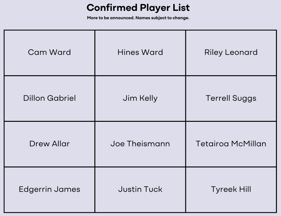 The Basics: The full signers list so far can be seen in the gallery below and it includes a mix of cards from their college days as well as some NFL cards, too. Memorabilia cards and printing plates with new ink are among the possible signed finds. Signers lined up for this one include Cam Ward, Dillon Gabriel, Drew Allar, Edgerrin James, Hines Ward, Jim Kelly, Joe Theismann, Justin Tuck, Riley Leonard, Terrell Suggs, Tetairoa McMillan and Tyreek Hill for starters. ... Boxes once again will carry a suggested retail price of $49.99.
