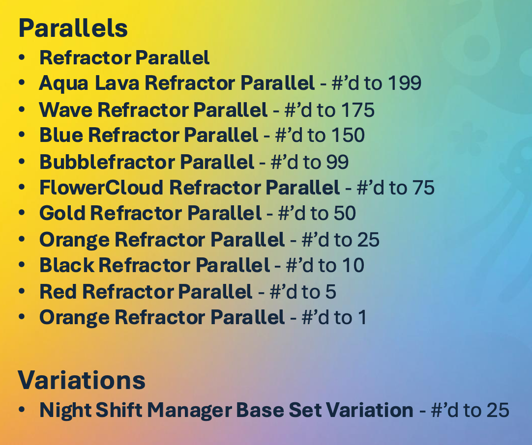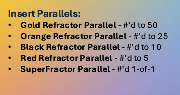 Update (Sept. 4): Full parallel info has been added. Rare inserts such as the Gallery and VIPs cards will only have Red (/5) and Supers.