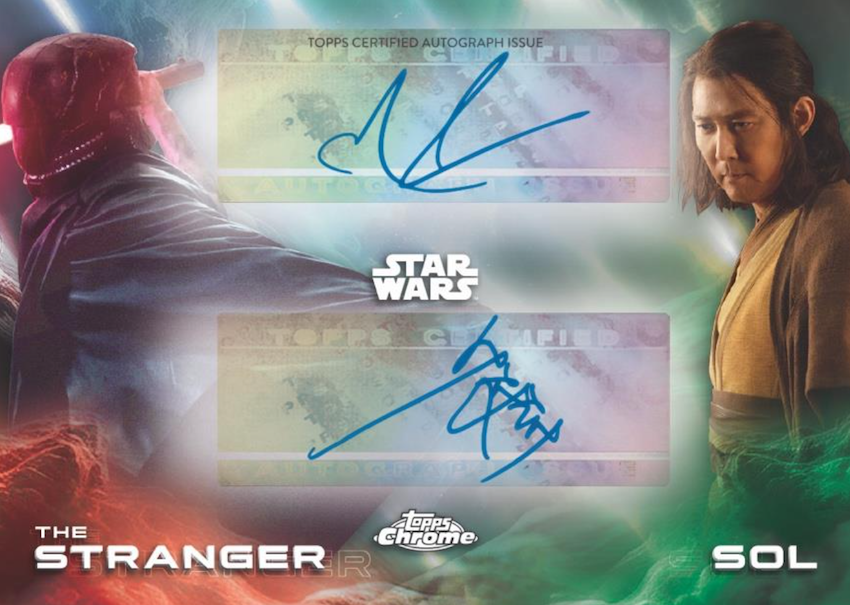 The autograph lineup here will be simple -- character autos, dual and triple autos -- while sketch cards and printing plays book cards round out the hits. Among the signers here? Jude Law, Carrie-Anne Moss, Nick Frost, Harrison Ford, Mark Hamill, Natalie Portman, Samuel L. Jackson, Daisy Ridley and Pedro Pascal.