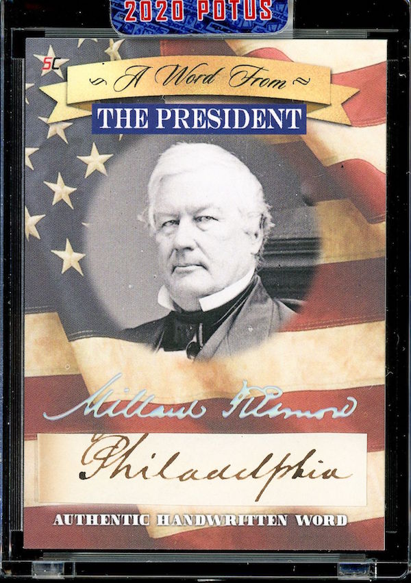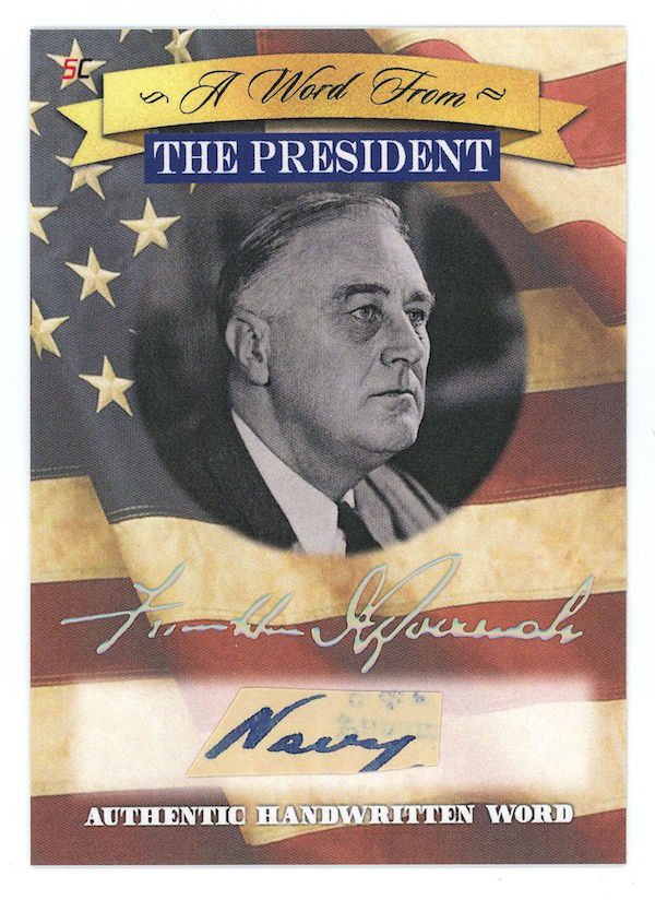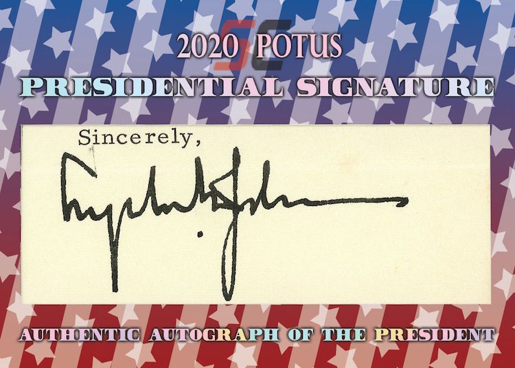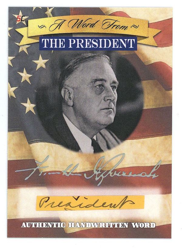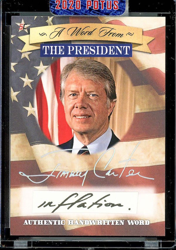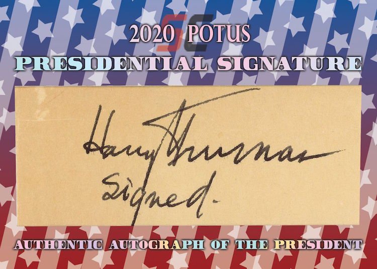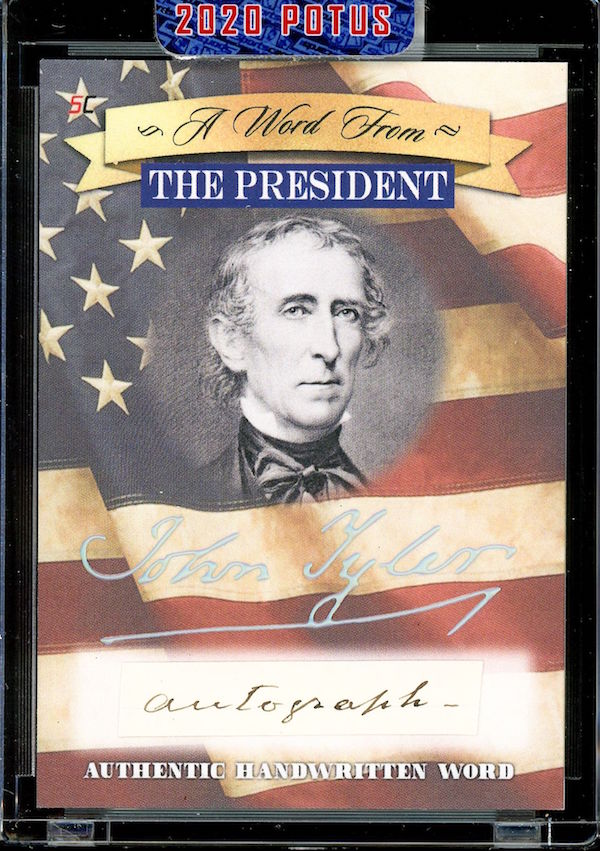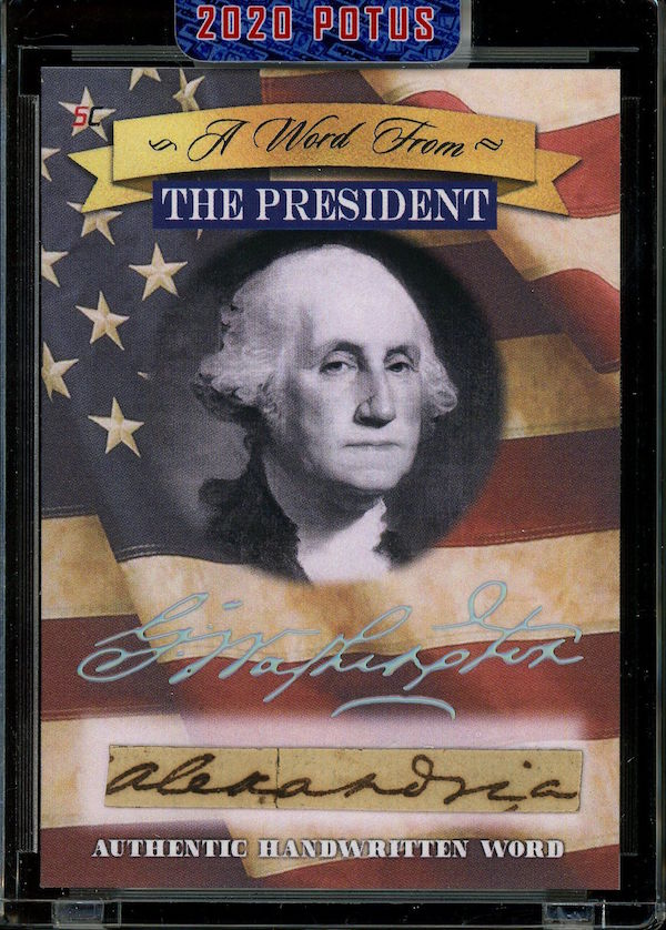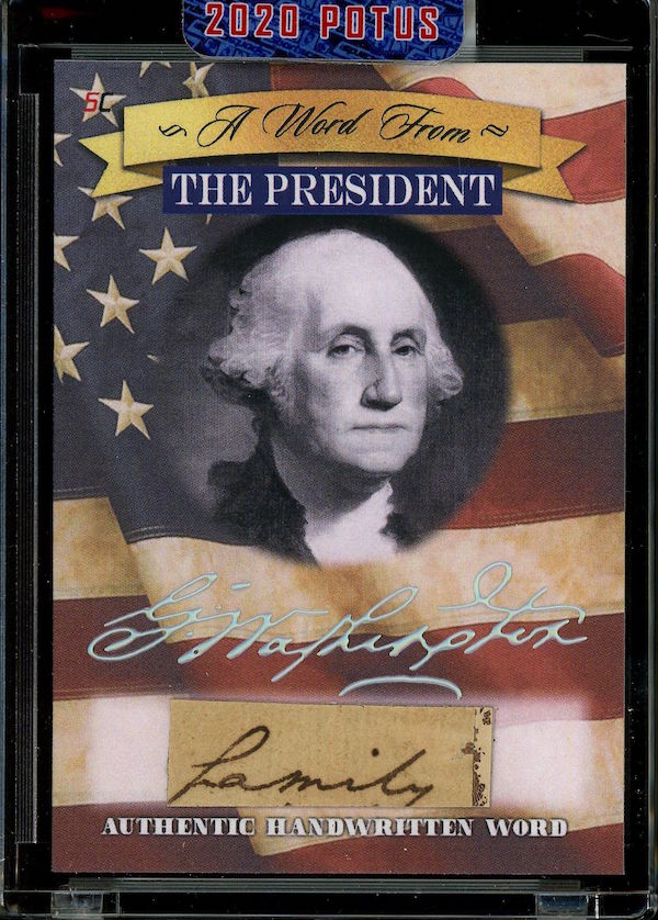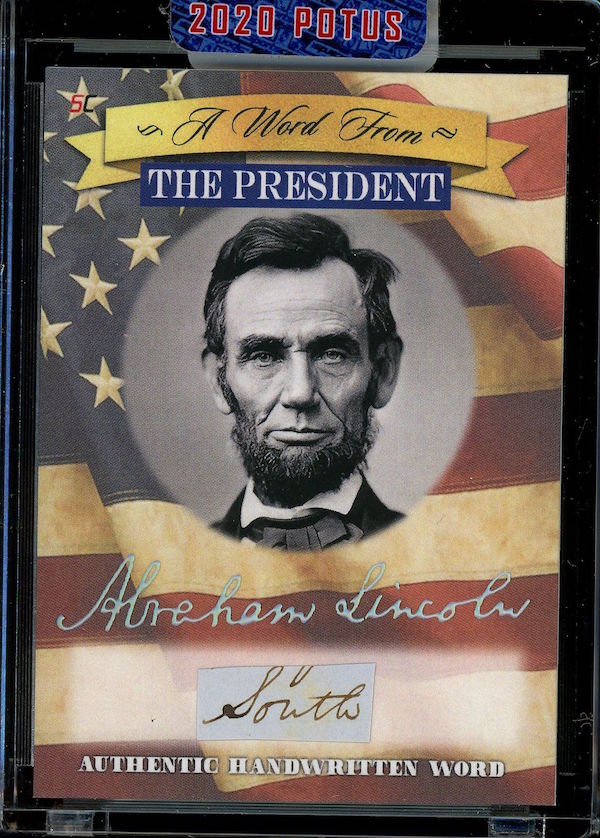The Basics: All "A Word from the President" cards are cut from authenticated manuscripts and letters hand-written by each of them with autographs roughly one in every fifth display (every 50th mini-box). Relics are cut from documents that were handled by them and every 10-box display is guaranteed to include a "Word" card from George Washington, Thomas Jefferson, Abraham Lincoln or John F. Kennedy as well as a Relic card from one of them. All "Word" and signature cards will arrived in encased presentations. All documents were authenticated by PSA/DNA, BAS or JSA and full pieces can be viewed on www.sportscards.com/2020potus.