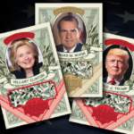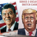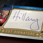 The Basics: New here will be sketch cards and booklet cards with both cut autographs and without (Party Pals). Balancing out the Trump Under Fire insert, which will have a new wave here, will be a Clinton Controversies insert. ... Each box will include 16 high-number base cards, four Candidate Portraits, four Trump Under Fire, three Clinton Controversies, one Letter Card and two hits. ... Among the hits are several types of cards with each one's full-case ratio noted below: