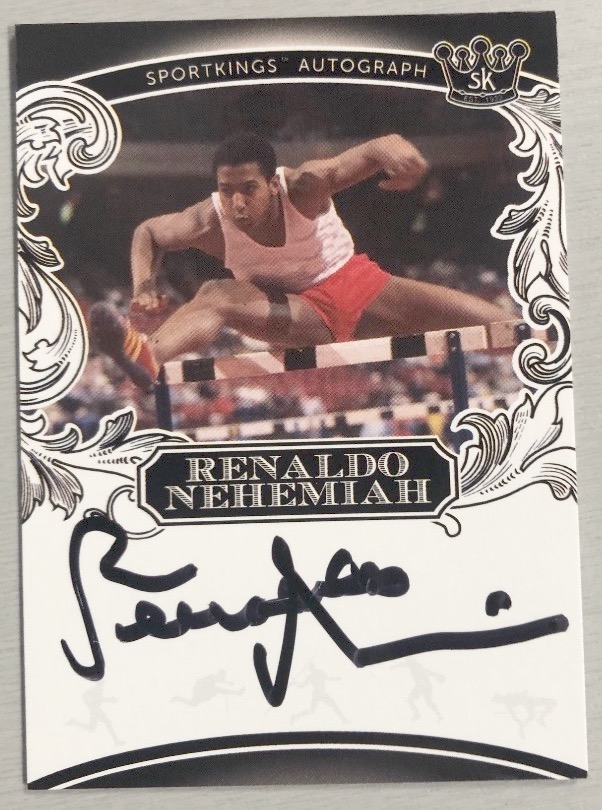 Card numbering will pick up with card No. 154 where the past volume finished and also in play will be 1/1 red back/background cards for each of them beyond the other previously mentioned colors. ... Among signers teased for this one include Barry Sanders, Billy Sims, Chris Mullin, Tom Glavine, Hulk Hogan, Bill Walton, Dominique Wilkins, Ricky Williams, Wade Boggs, Alan Trammell, Renaldo Nehemiah and Nastia Liukin for starters.