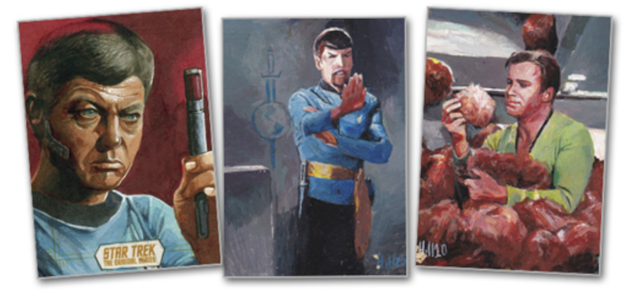 Update (April 22): The TOS Laser Cut Villains insert cards planned for this one will be a redemption for the entire set found one in 432 packs. Why? "The printer who makes these cards for us does government work related to the COVID-19 situation," according to Rittenhouse Archives President Steve Charendoff. "As a result, the printing of these cards was delayed. So instead, we created a redemption card for the full 18-card set." This release is sold out but "we should have these cards/sets ready to ship out very close to the release date."
